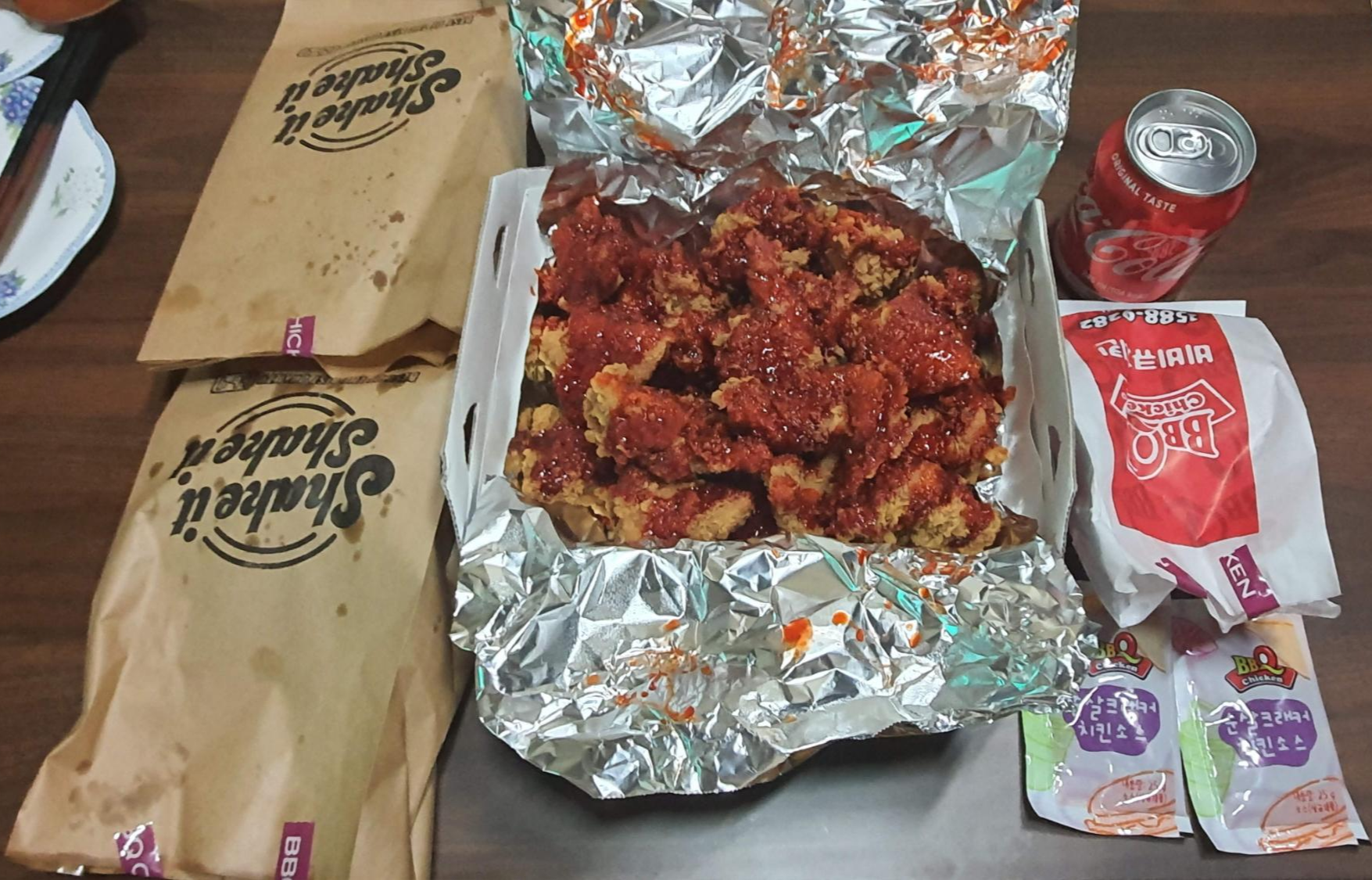 집에 오는 길에 주문한 BBQ 뱀파이어 치킨 순살 3단계인 헬게이트와 멘보샤를 받아 왔어요. ㅎㅎ