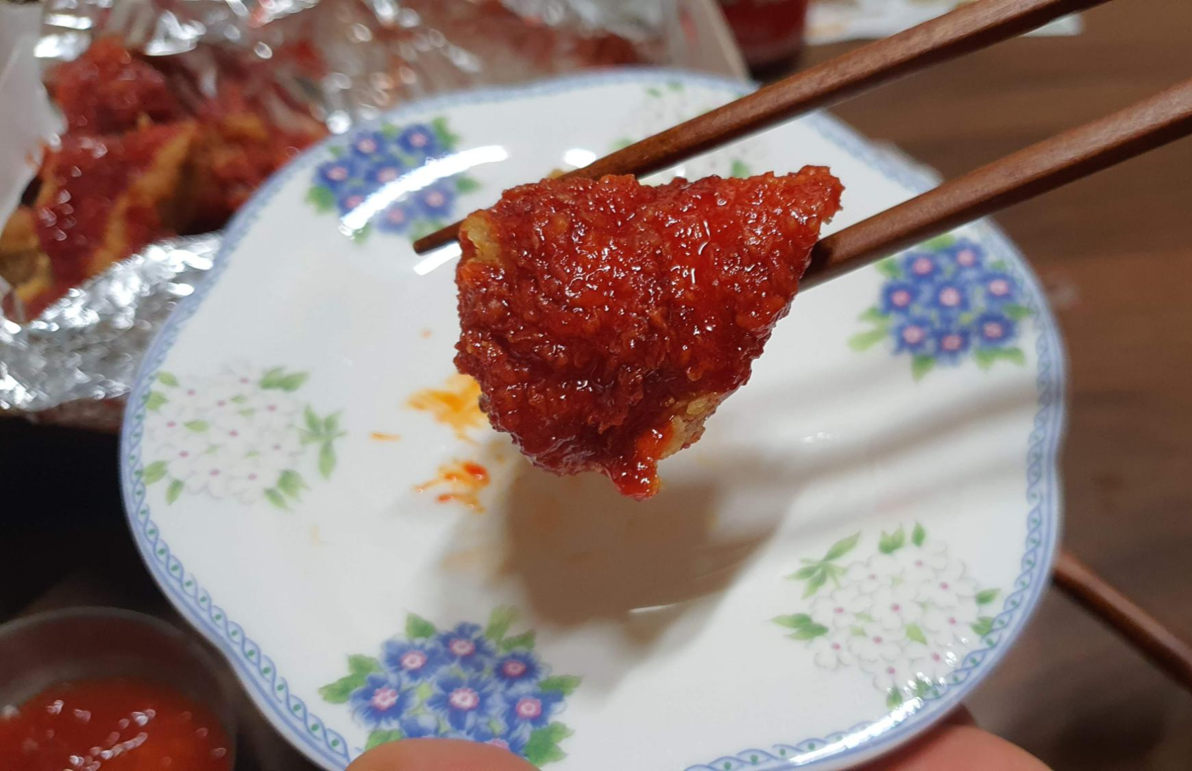 상자를 열다가 우연히 젓가락에 묻은 양념을 핥아 봤는데요. 순간 입이 얼얼해짐을 느꼈어요.