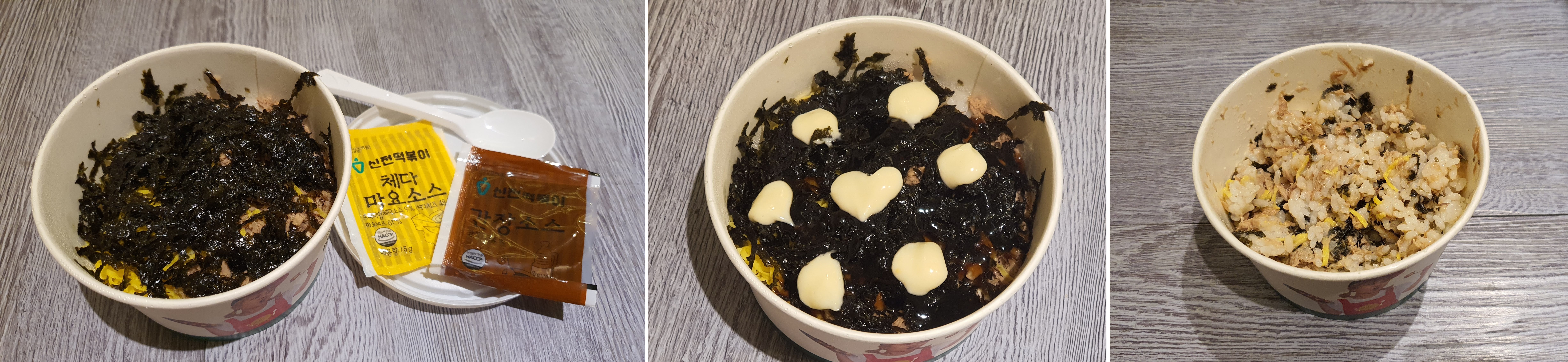 참치마요 컵밥은 마요소스와 간장소스를 넣고 비벼줘야해요.