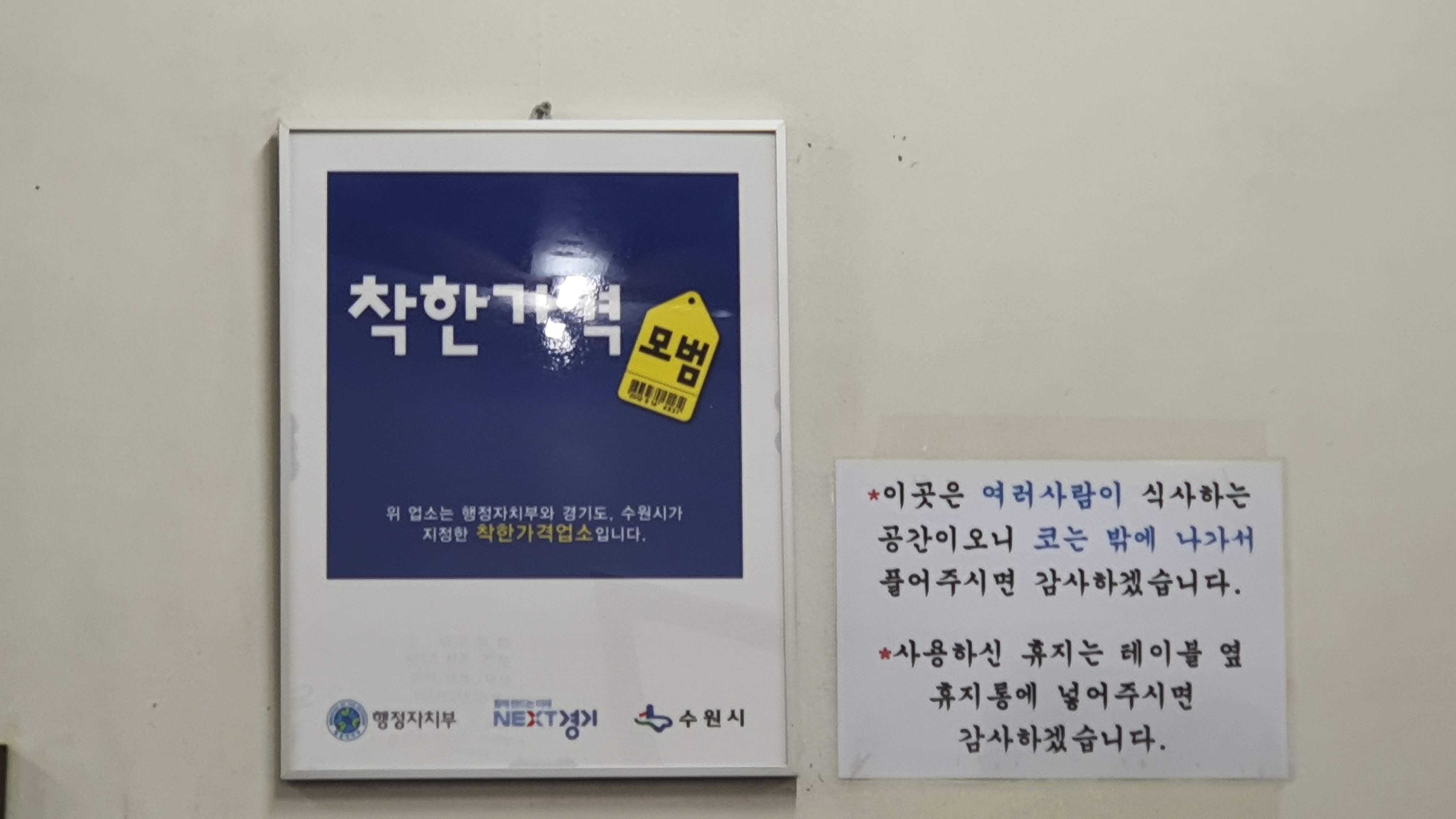 가격이 너무 착해서 착한 가격 모범업소로 지정되어 있어요^^