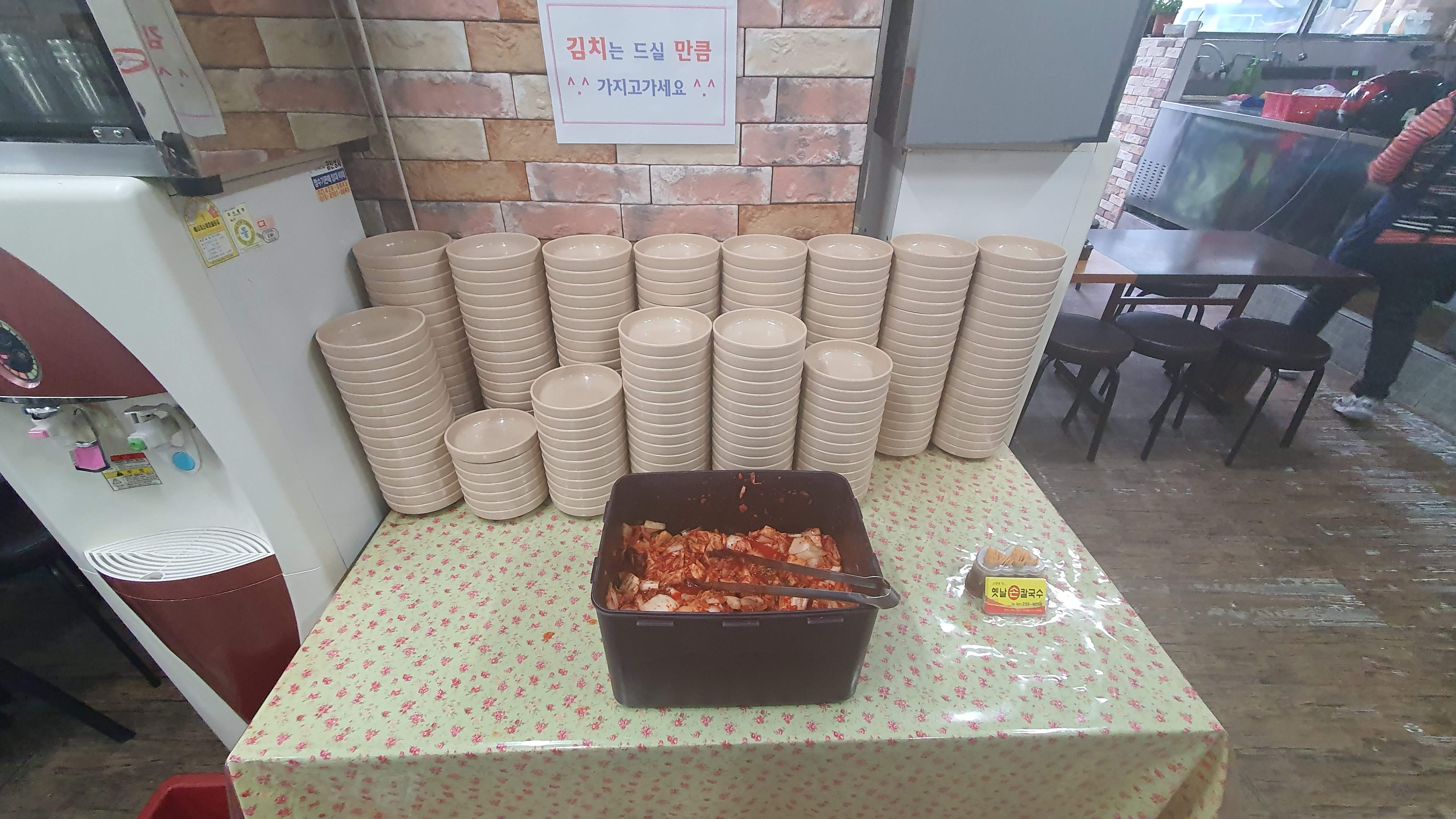 요금은 선불 1인 1식을 원칙으로 해요. 물과 김치는 셀프예요^^