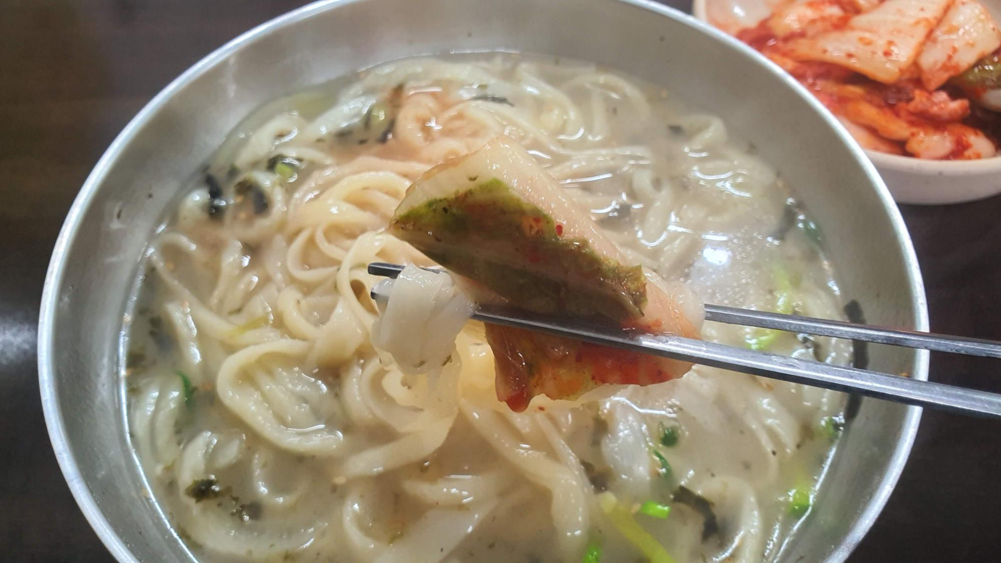 면이 손수 만드셔서 그런지 정말 쫄깃쫄깃해요. 김치도 아삭아삭한 것이 칼국수와 너무 잘 어울려요^^