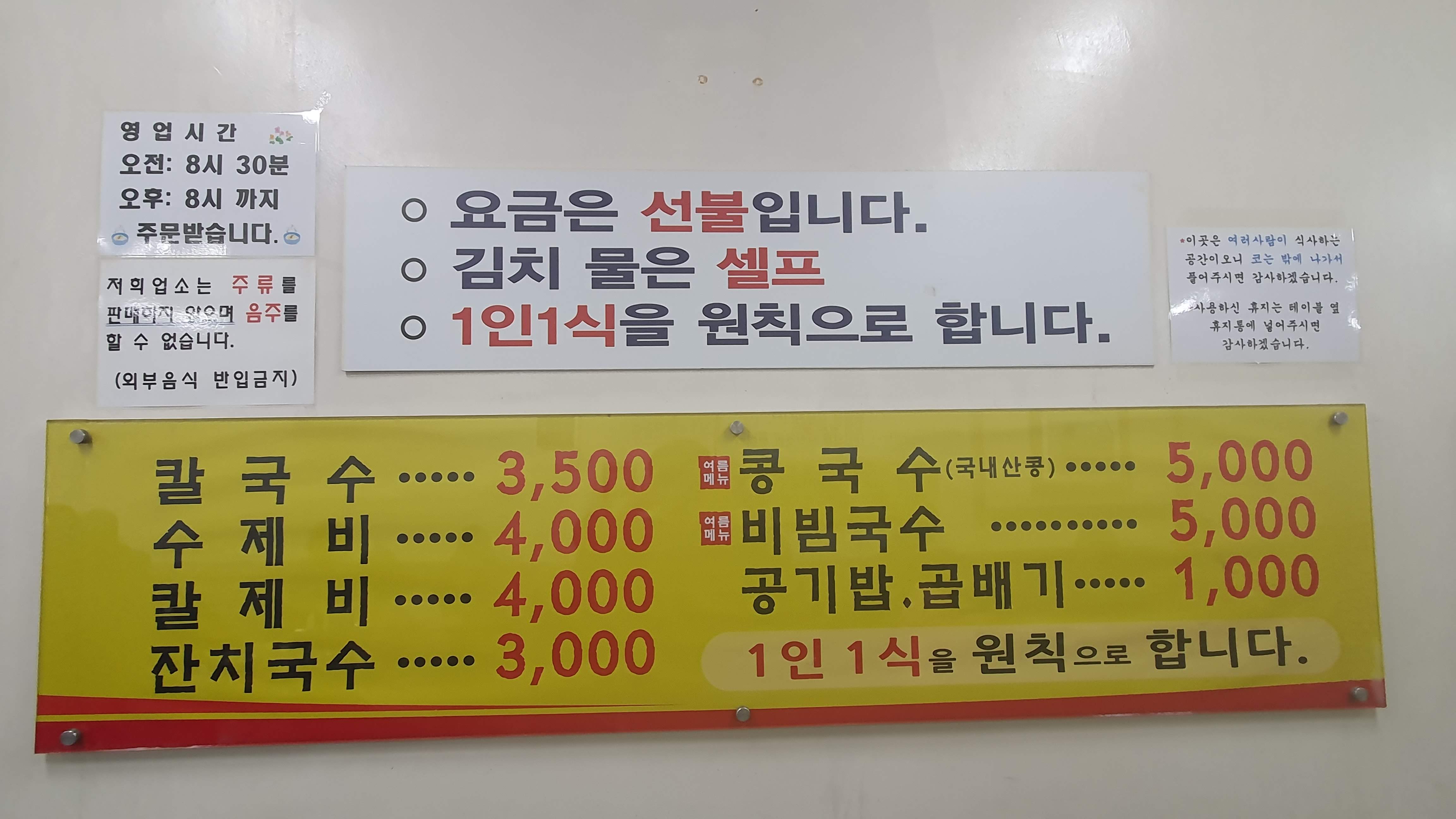 저는 입구에 들어서서 자리에 앉아 오늘은 왠지 칼국수가 당겨서 칼국수 하나를 주문을 했어요.