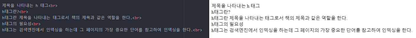 'h 태그'는 별도의 줄바꿈이 필요없이 자동 줄바꿈이 됩니다.