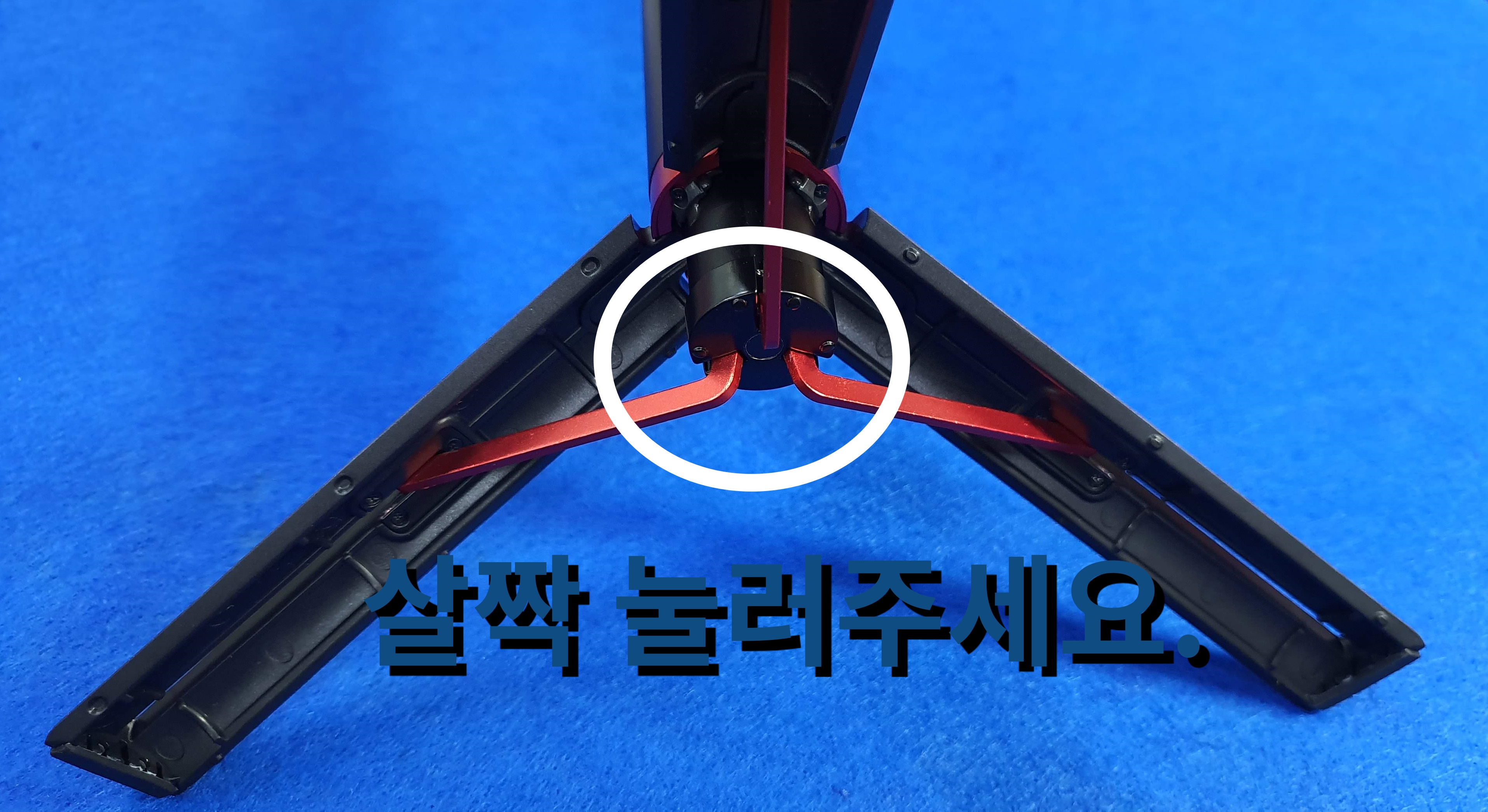 삼각대를 접을 때는 아래 부분을 살짝 눌러 주면서 해 주는 것이 좋을 거 같아요.
