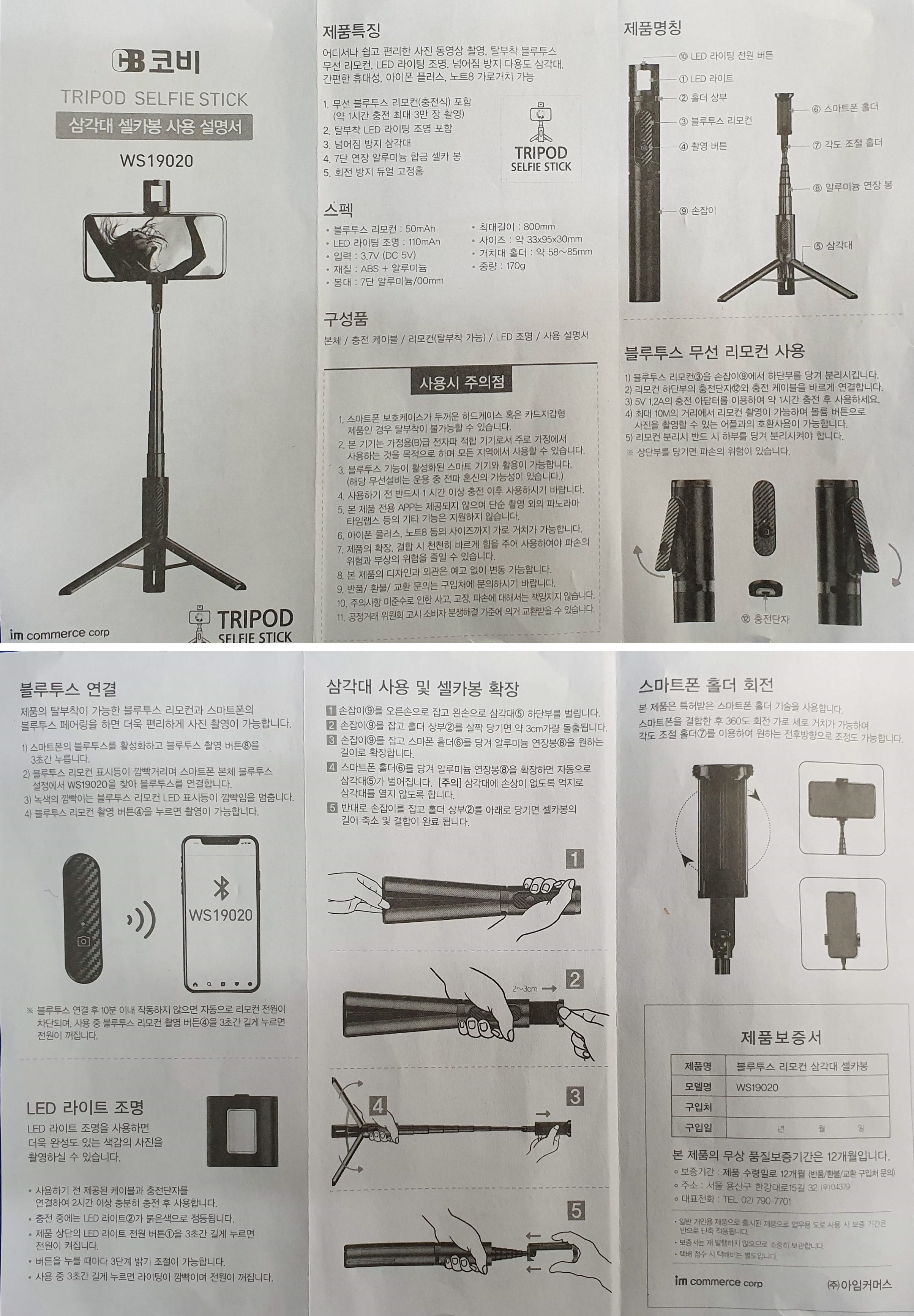 코비 삼각대 셀카봉의 모델명은 WS19020이에요.