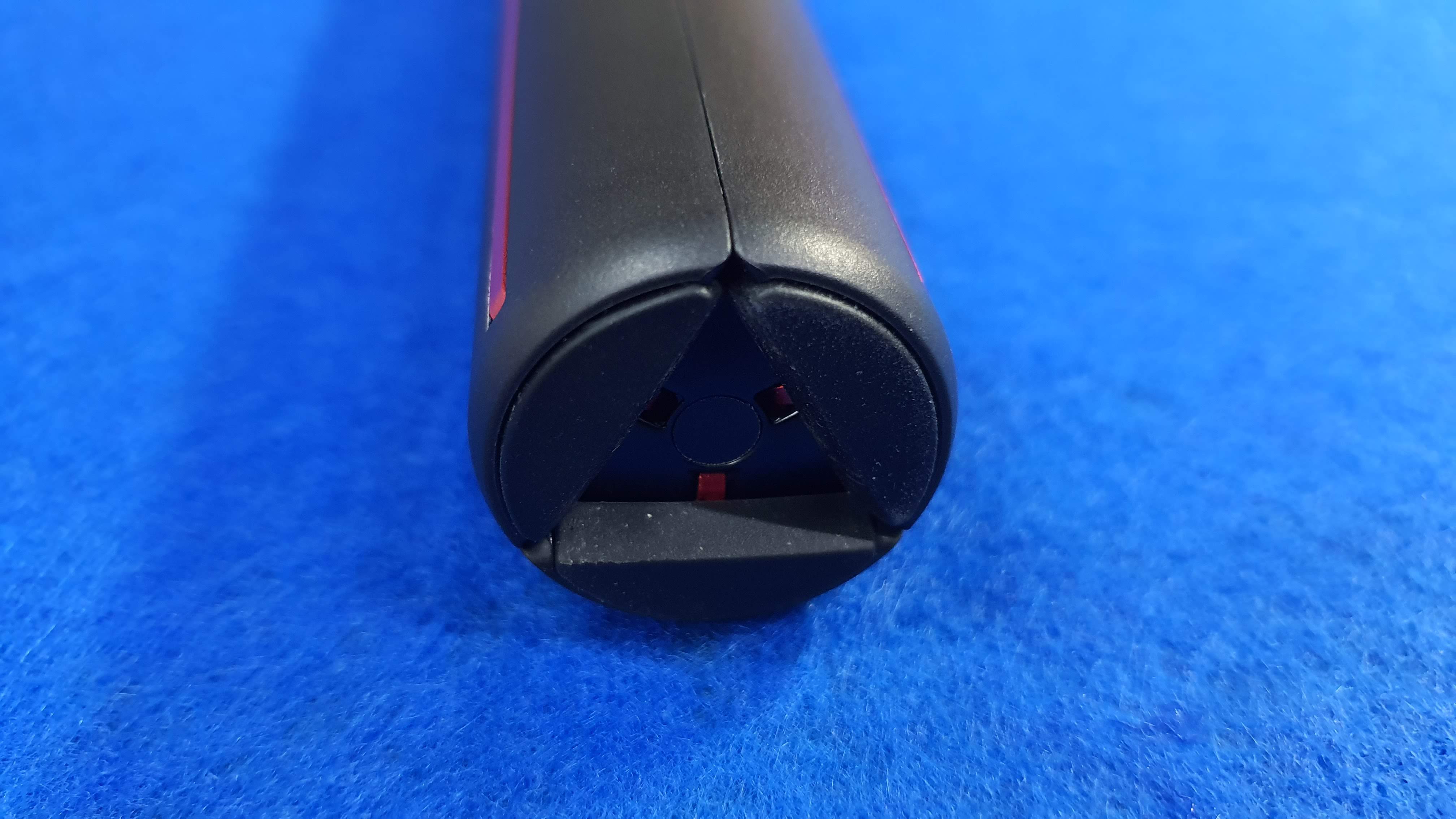 셀카봉을 꺼내기 위해서 잡아야 하는 부분이 너무 얇아서 뺄 때 조금 불편해요. 끼울 때는 윗면을 눌러야 하는데 삼각대가 펼쳐져 있으면, 조금 뻣뻣해서 잘못하면 사이에 살이 찝힐 수 있어요. 그래서 손바닥으로 잘 눌러야 해요.