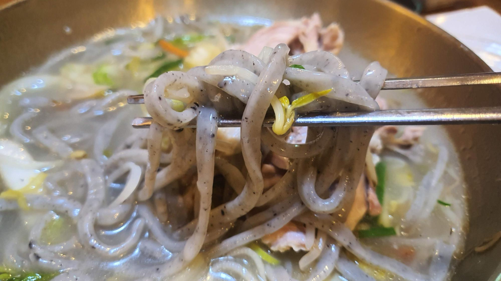 면이 쫄깃하니 맛있다고 하더라고요. ㅎㅎ 면에도 흑임자가 보여요^^