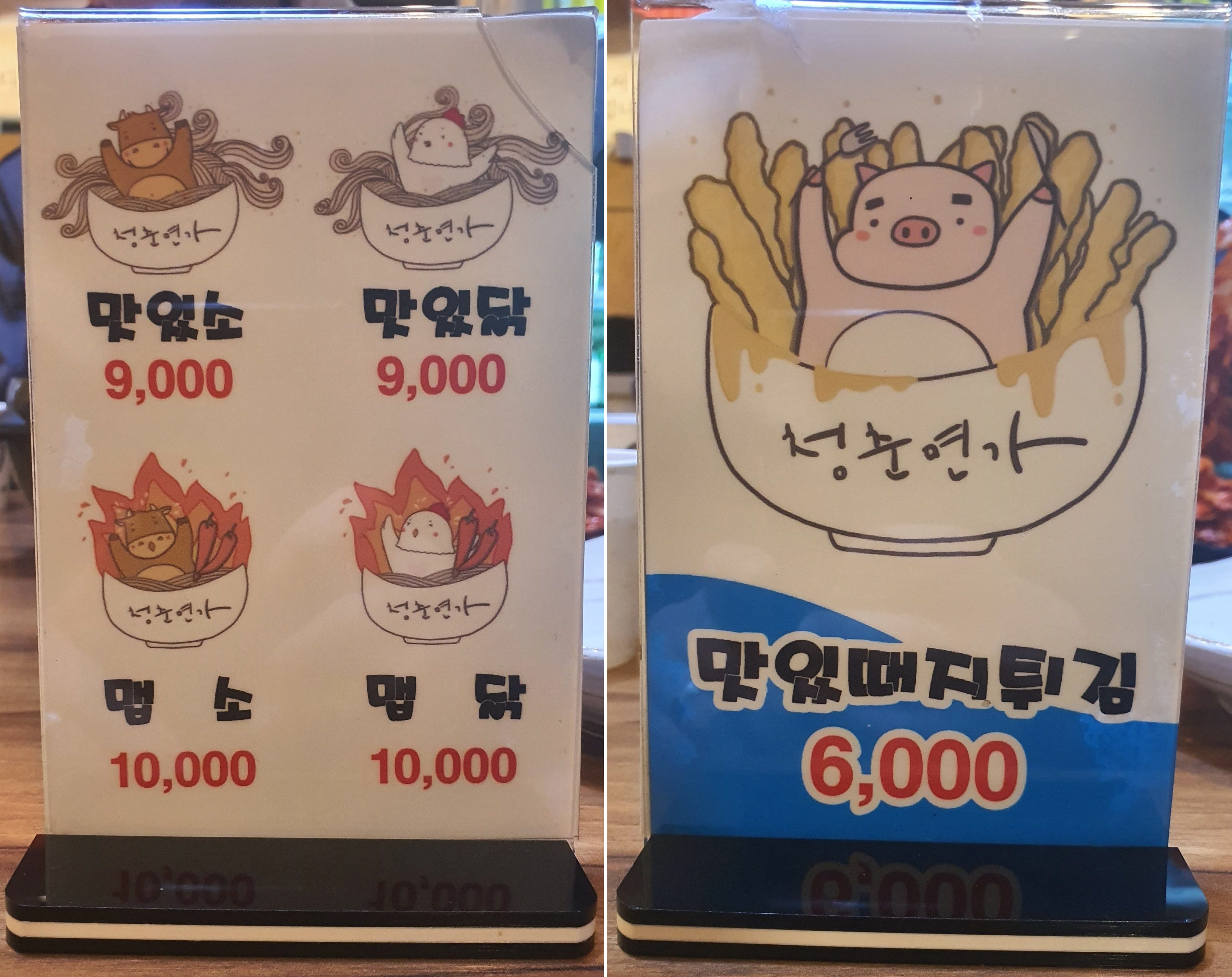 자리에 앉아서 메뉴판을 봤어요. ㅎㅎㅎ 메뉴판 그림이 귀여워요.