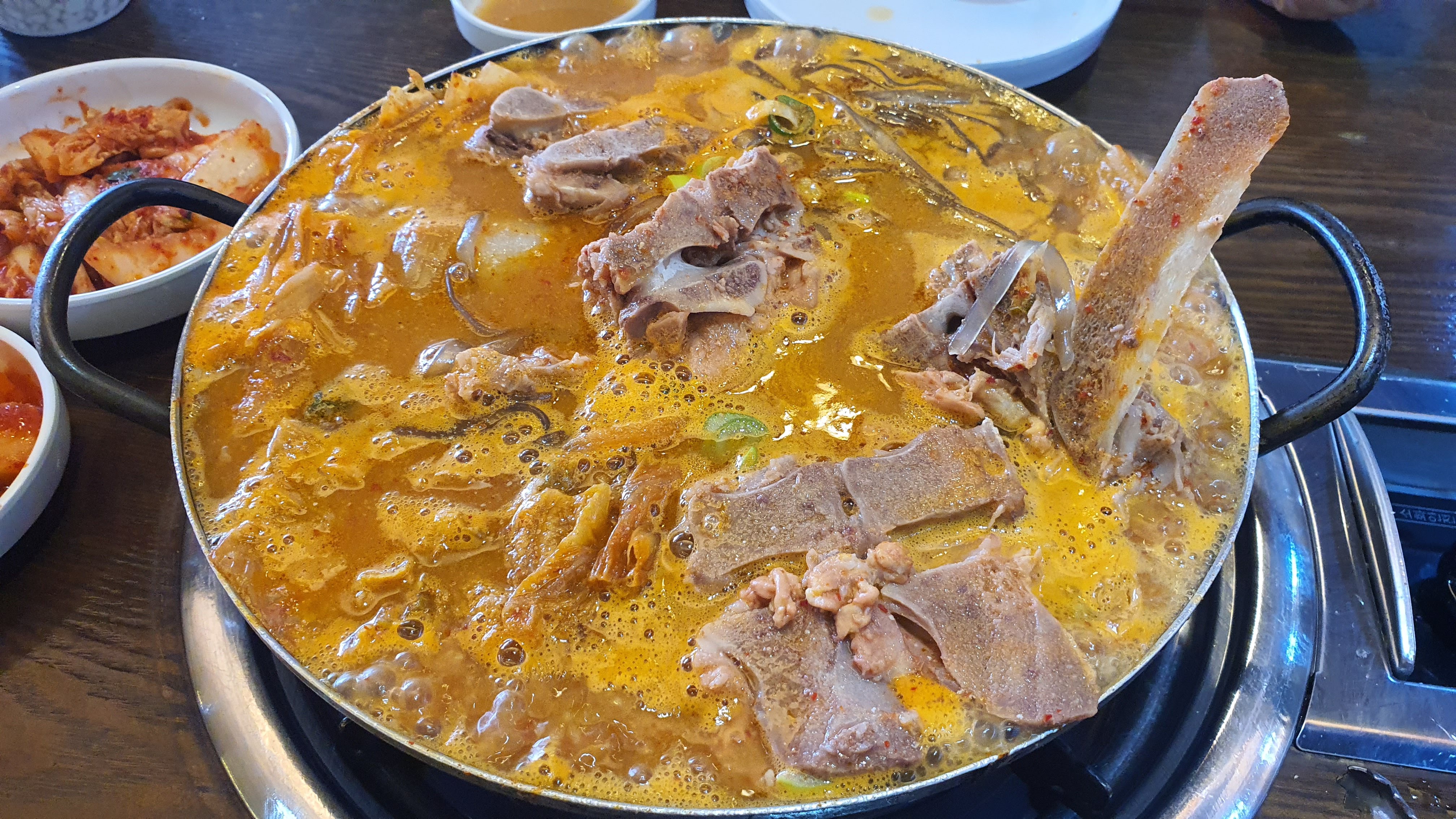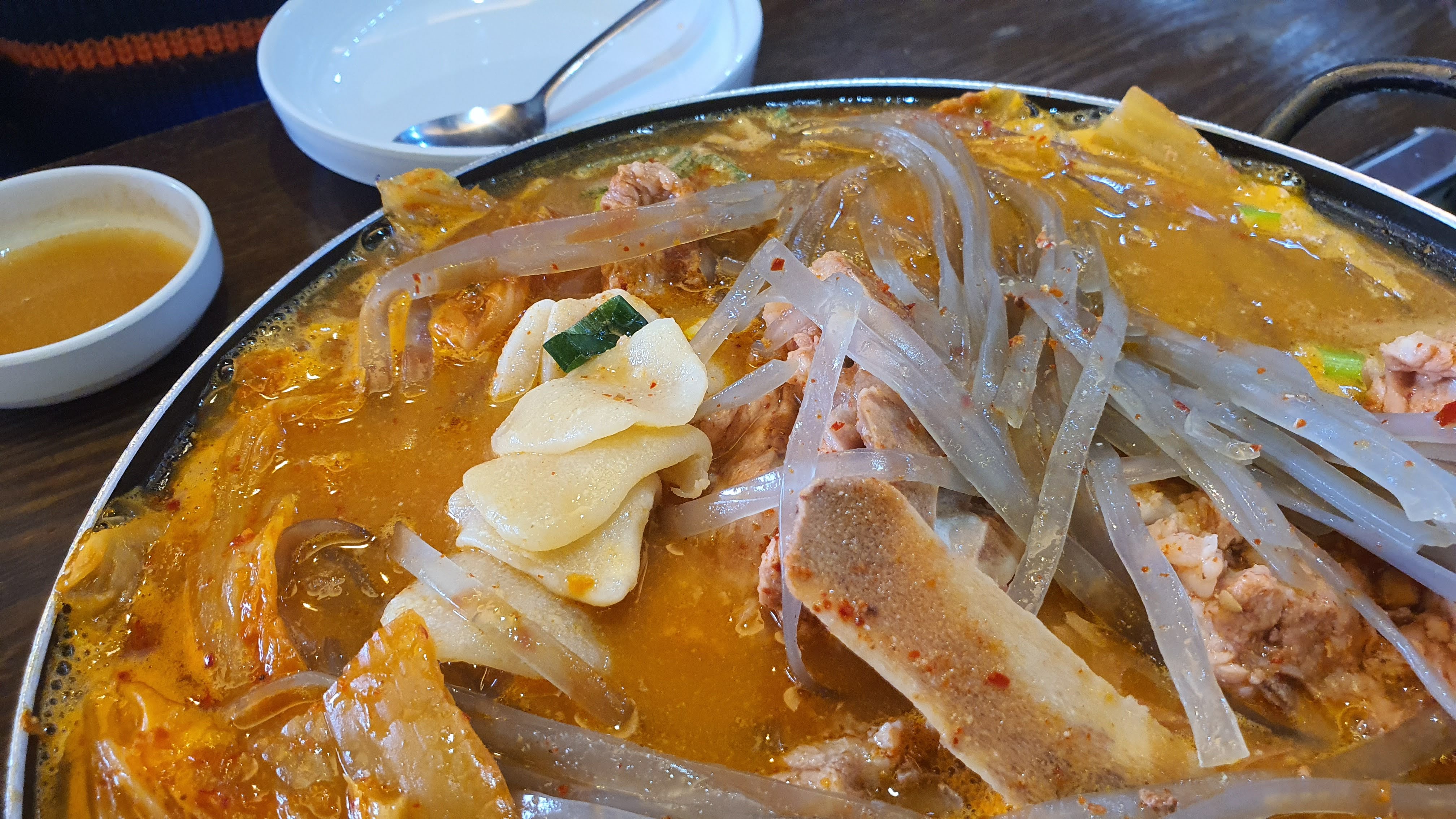 묵은지 감자탕 소을 시켰는데 생각보다 뼈도 많고 양도 많아서 3인이 먹어도 충분할 거 같더라고요.