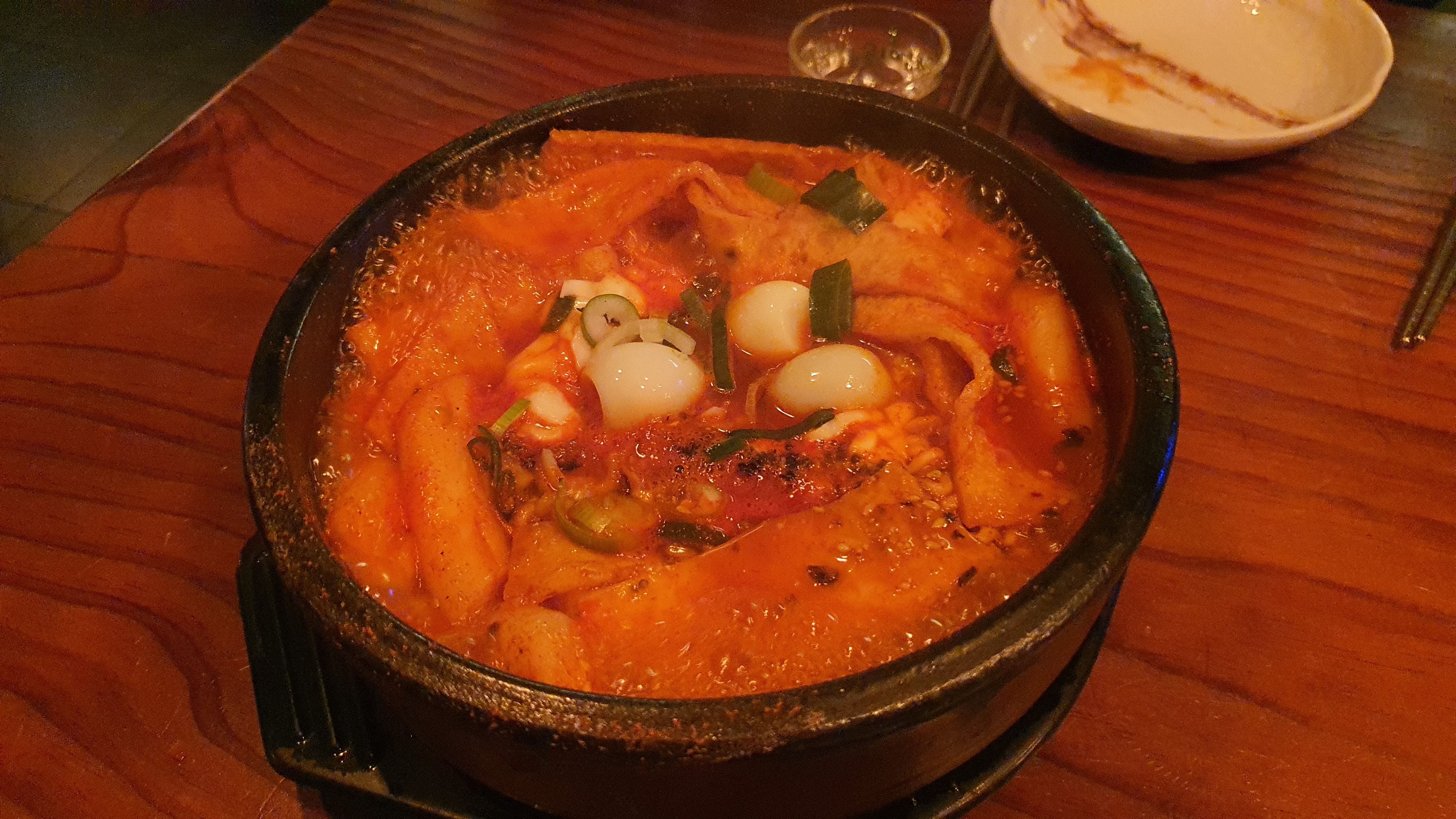 그리고 맥주로 목을 축이고 다른 일행이 와서 소주로 넘어가면서 치즈 라볶이를 추가로 시켰어요.