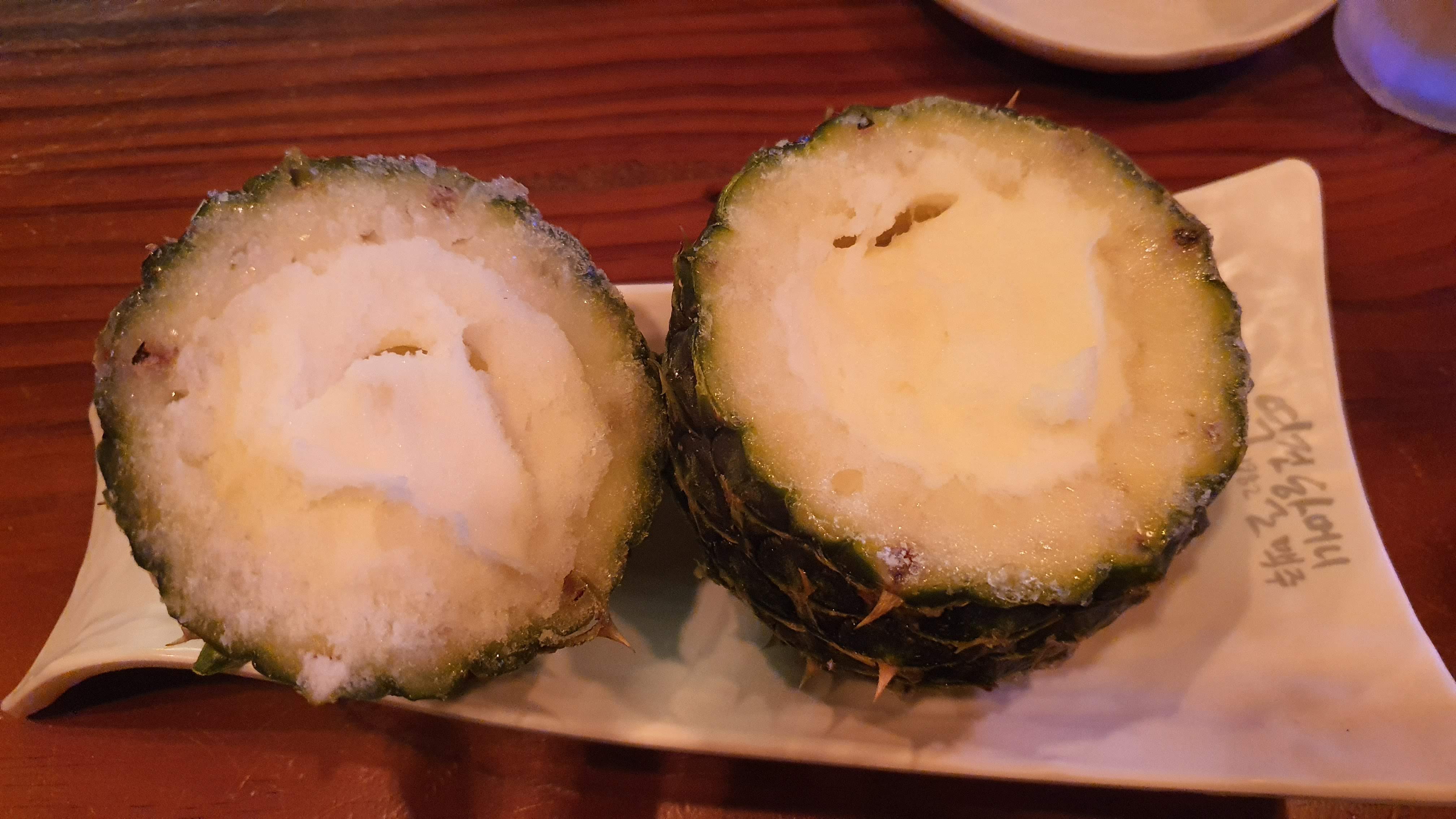 귀여운 파인애플 안에 파인애플 슬러시를 넣어둔 거 같았는데요. 술이 안 취할 거처럼 시원했어요. ㅎㅎ