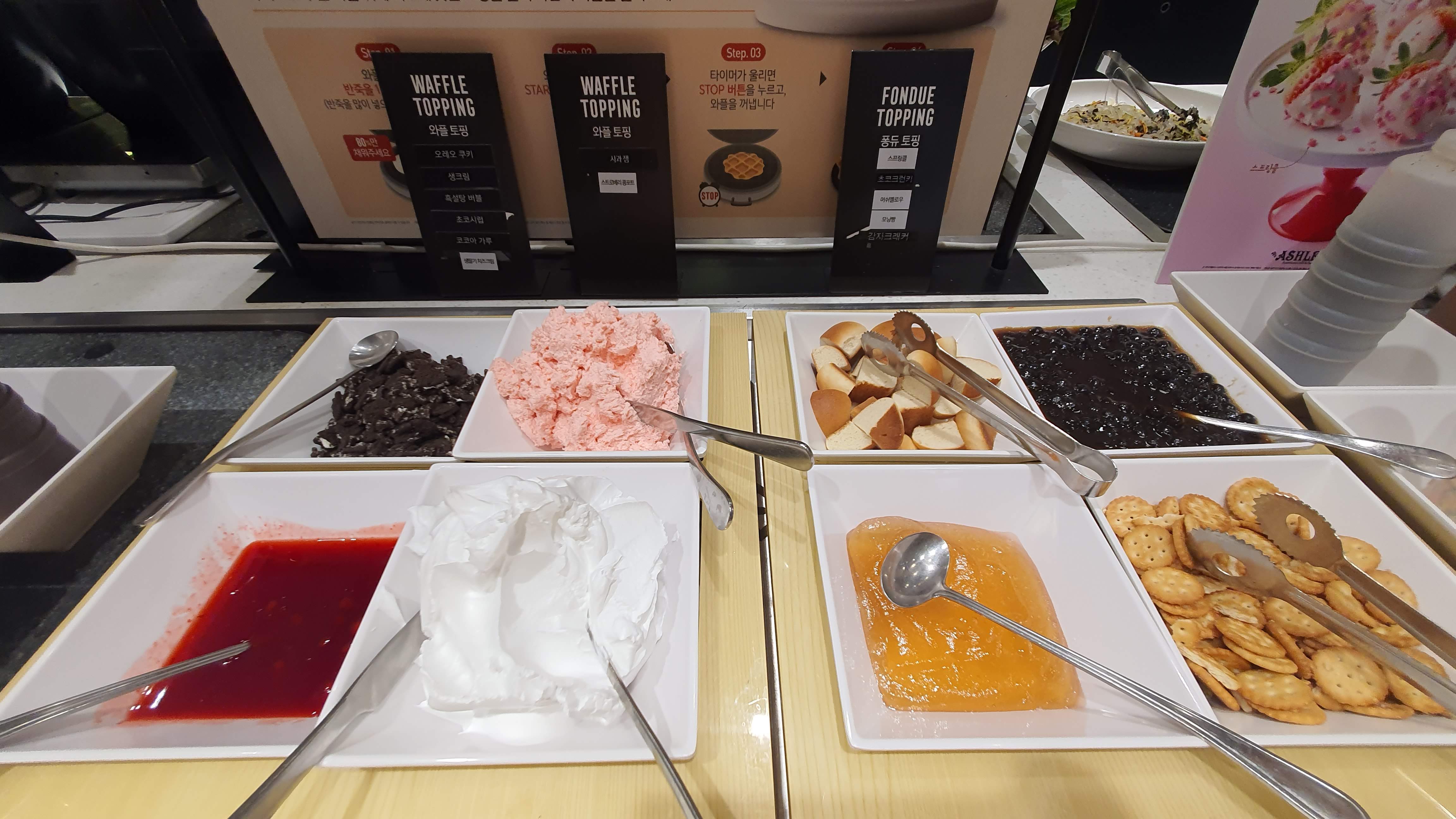 와플 토핑에도 생딸기 크림치즈가 있었어요.