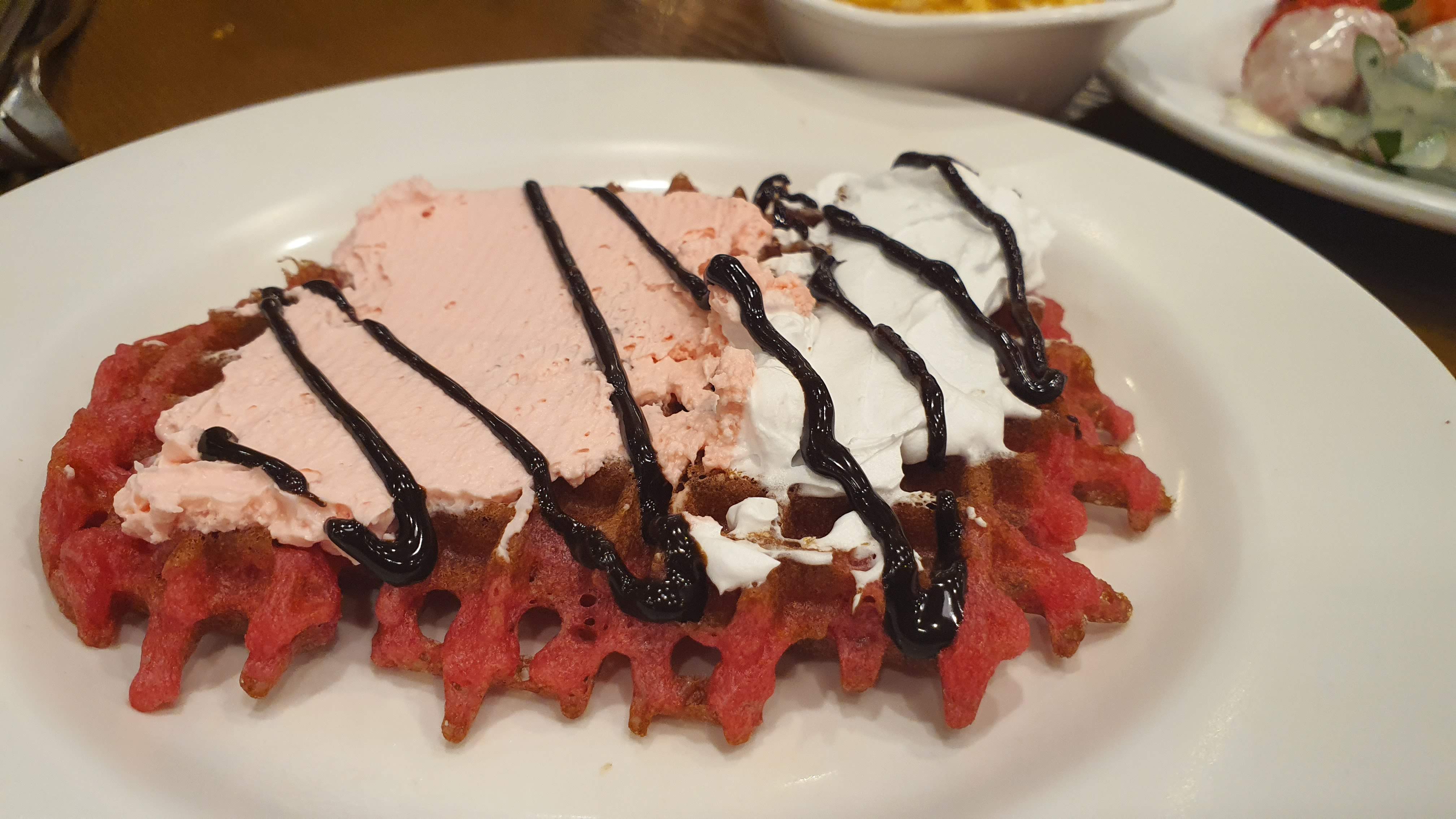 기본 와플에서 딸기 색상만 추가된 느낌이었어요. ㅎㅎ 크림은 딸기 크림보다 역시 생크림이 최고인듯해요.ㅎㅎ