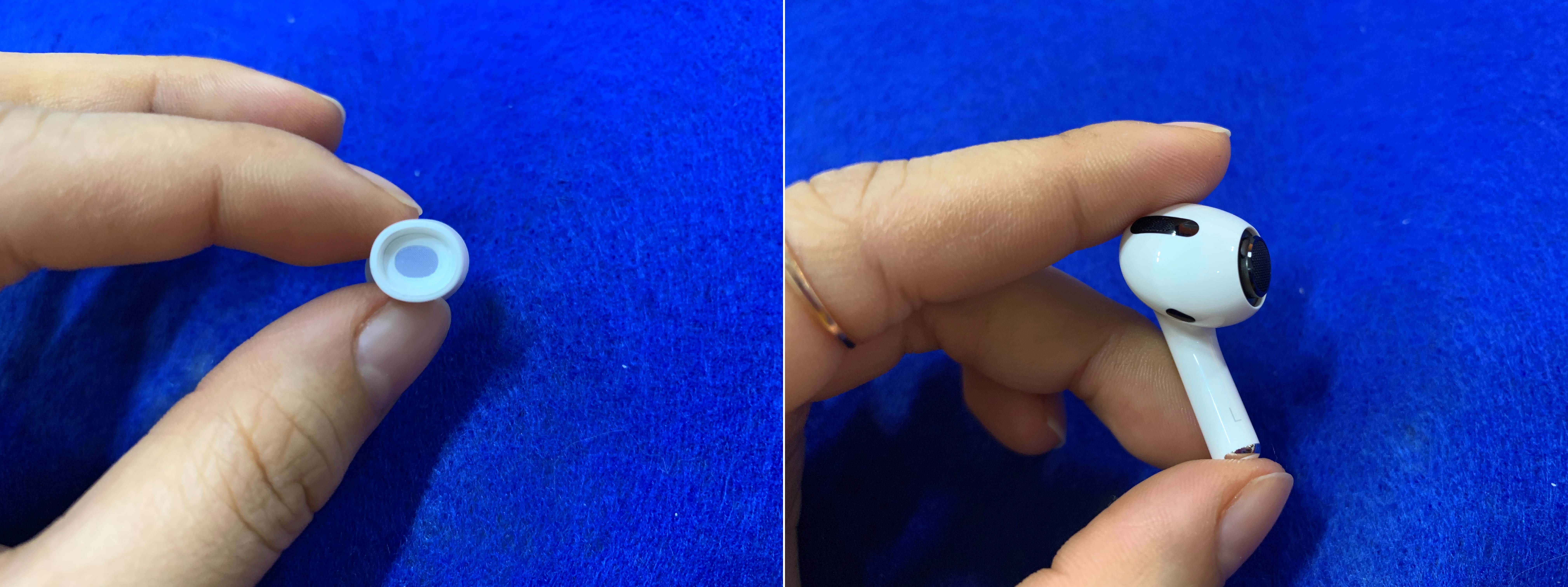 그런데 에어팟 프로의 이어 팁은 기존과는 다르게 연결되어 있어요.