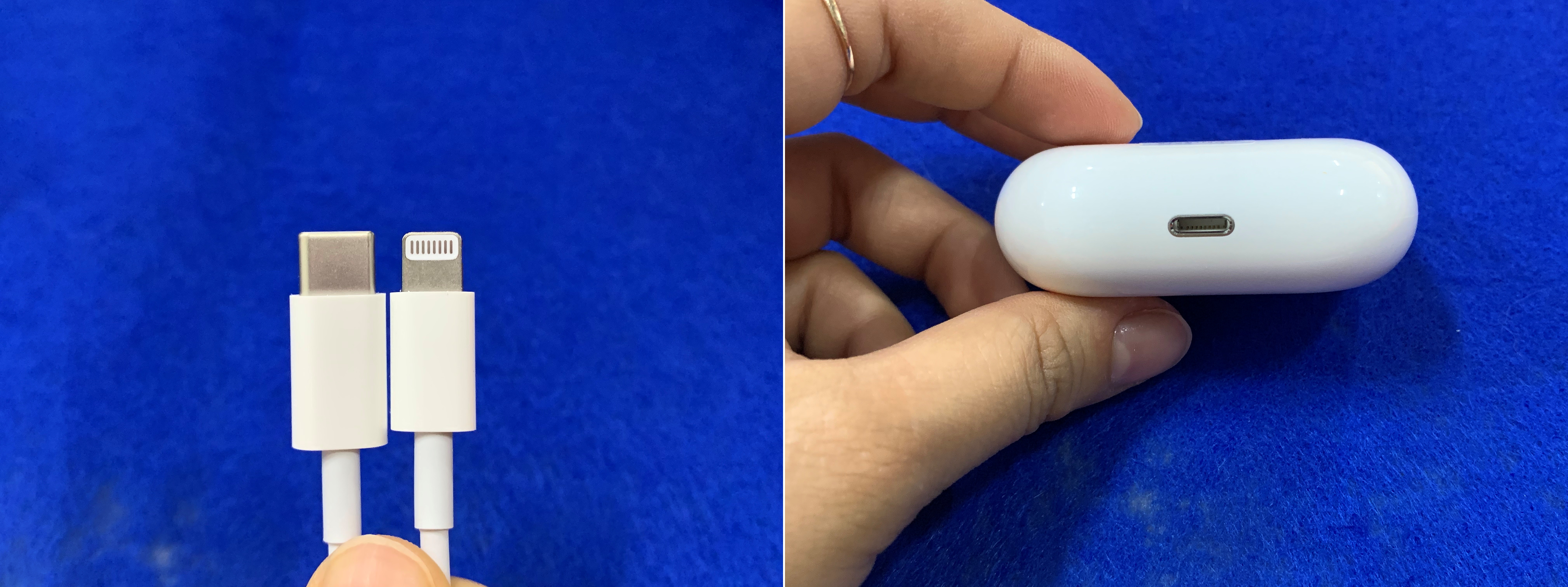충전 케이블도 C-Type이었어요. 하지만 충전기 쪽은 반대편은 애플의 기존 라이트닝 8 핀이네요.