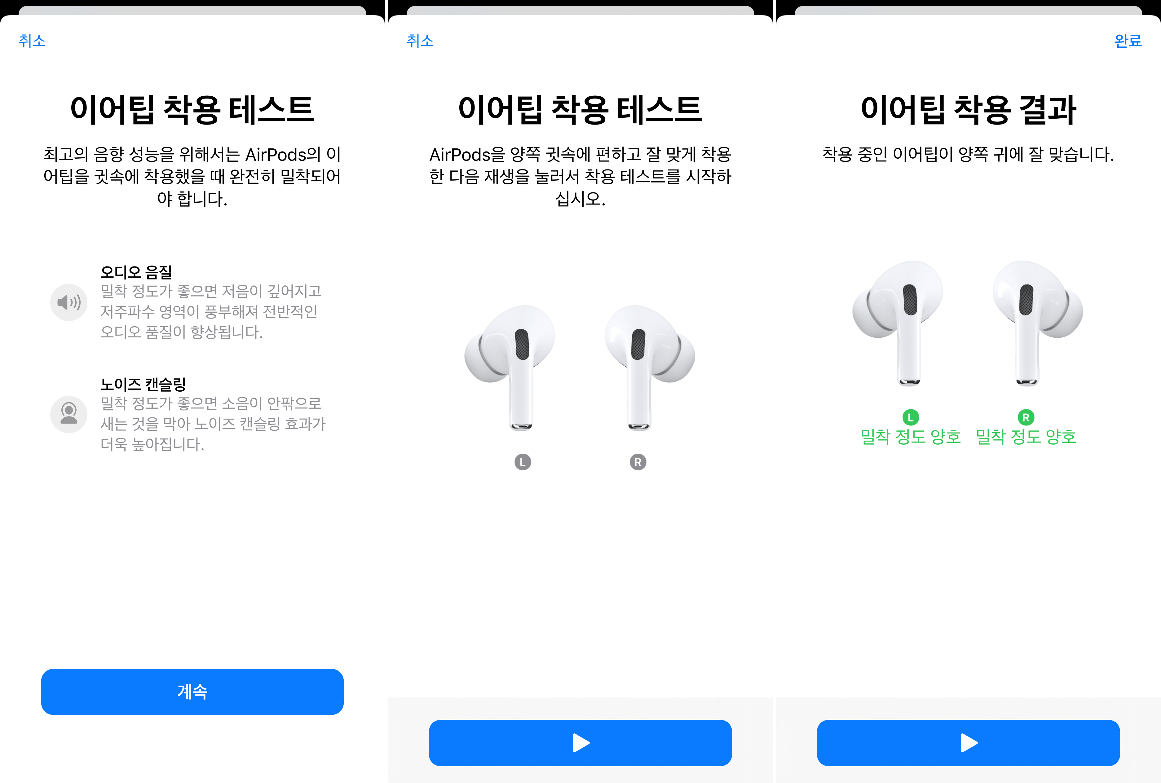 이어 팁의 크기에 대한 차이가 있고 착용하고 귓속에 에어팟 프로를 꼽았을 때 개인마다의 차이가 있어서 이런 기능이 포함되어 있는 거 같아요.