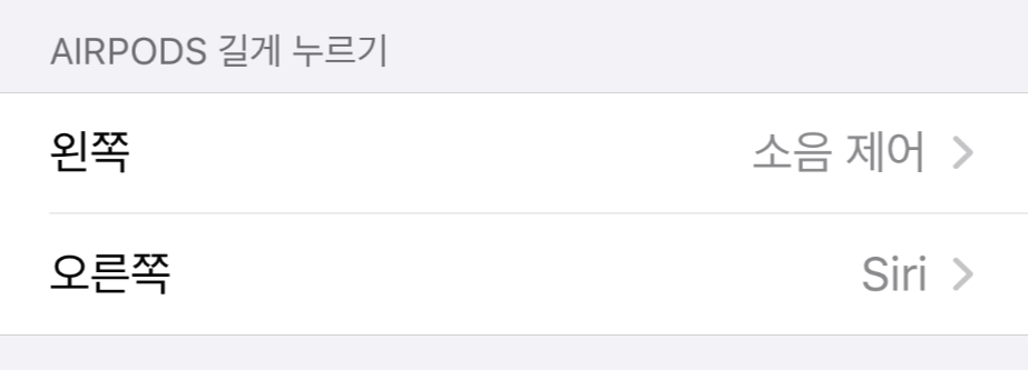 AIRPODS 길게 누르기 메뉴에는 왼쪽, 오른쪽의 포스 센서 제어에 대한 설정을 할 수 있어요.