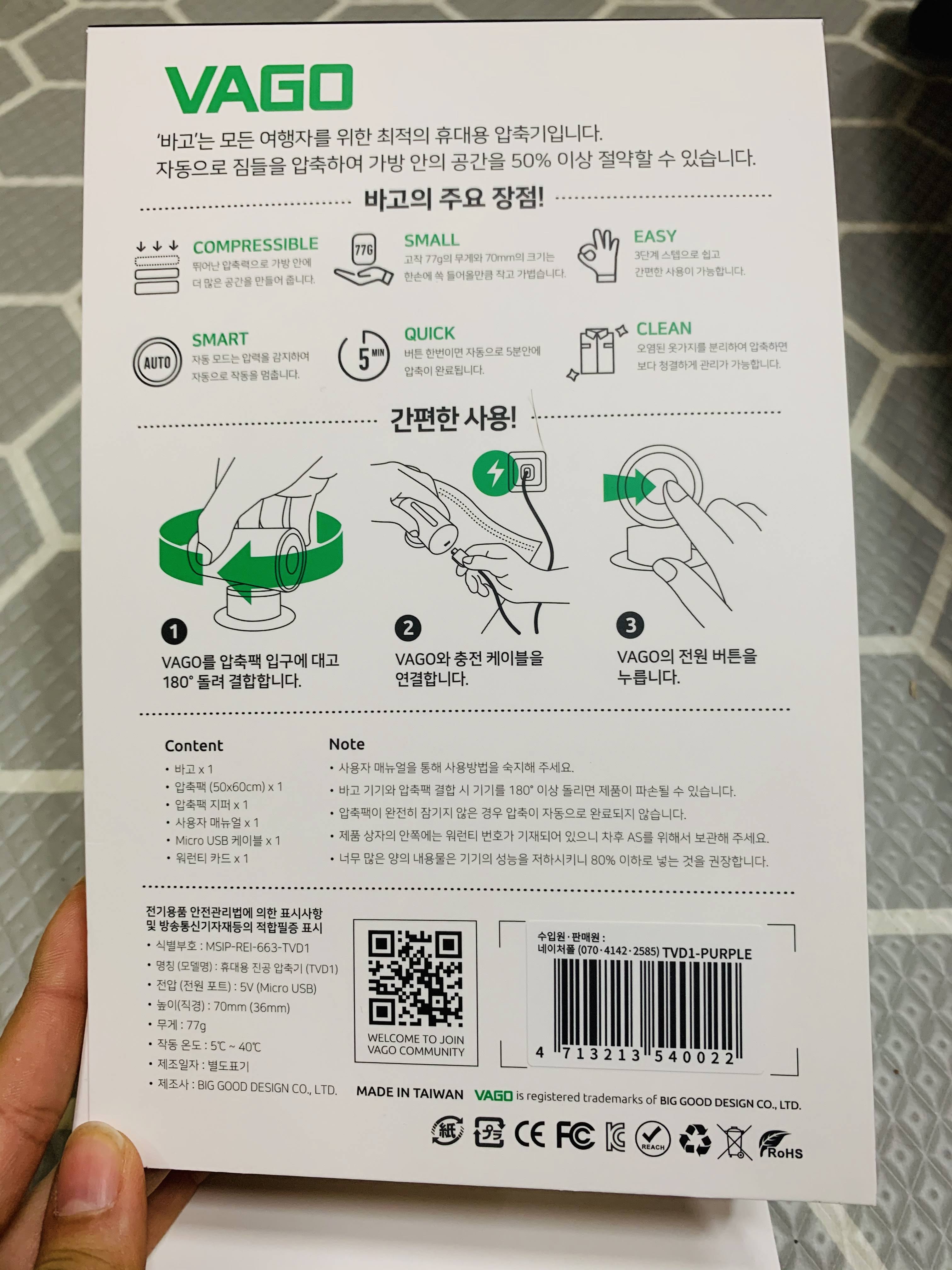 한 손에 딱 들어오는 작은 사이즈의 VAGO였어요. ㅎㅎ