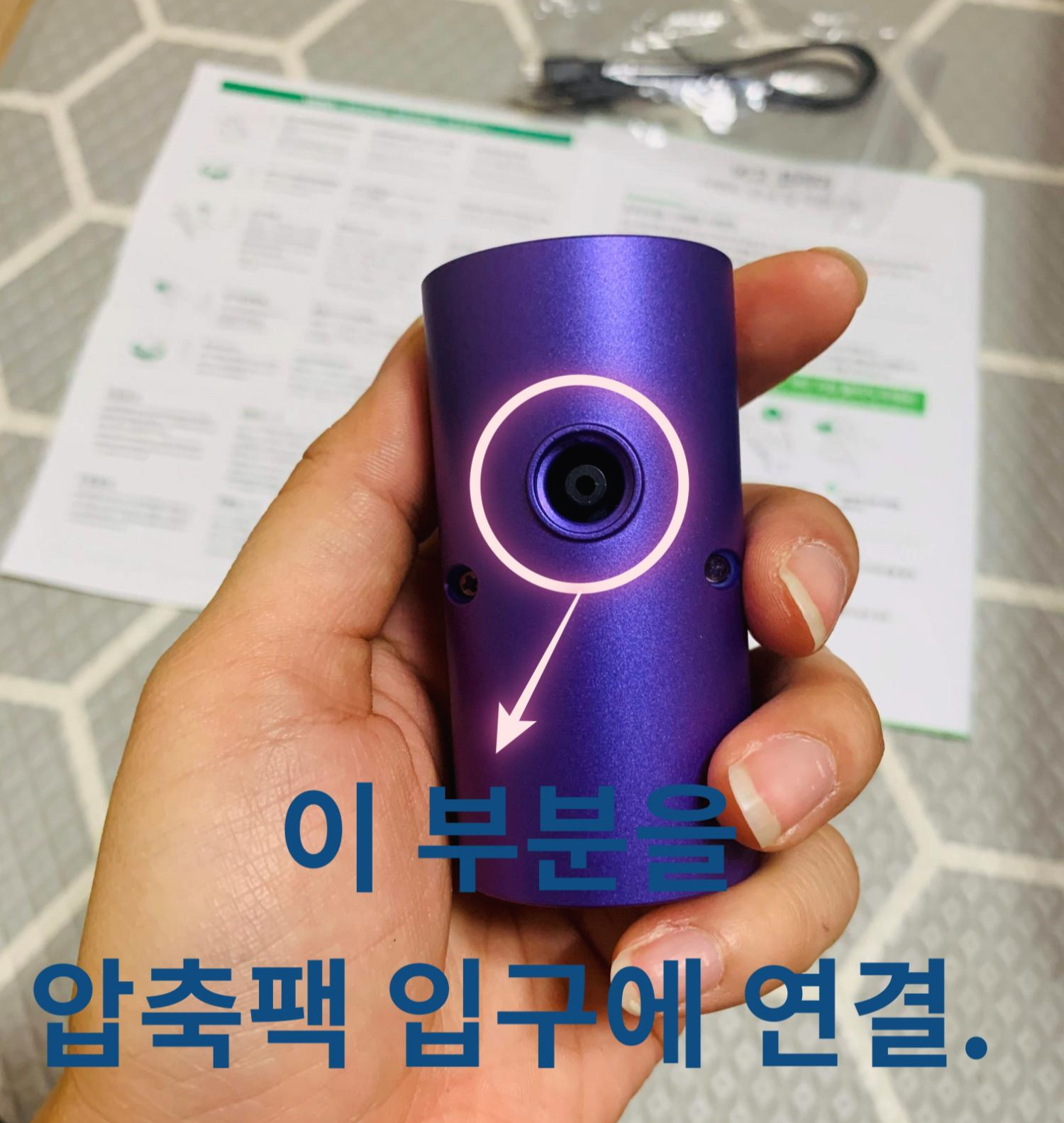 압축팩에 연결하는 영상과 동작 영상을 아주아주 간단하게 찍어 봤어요.