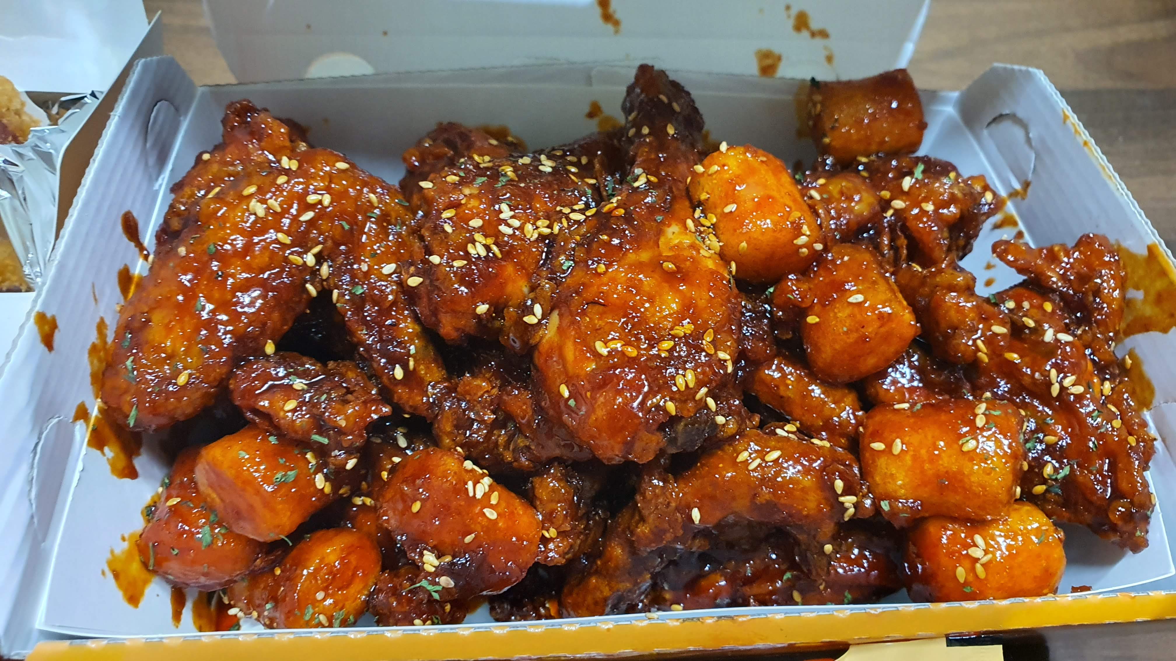 개인적인 생각으로는 불닭 양념이 달달하면서도 매콤해서 저의 입안을 항상 즐겁게 하는 거 같아요.