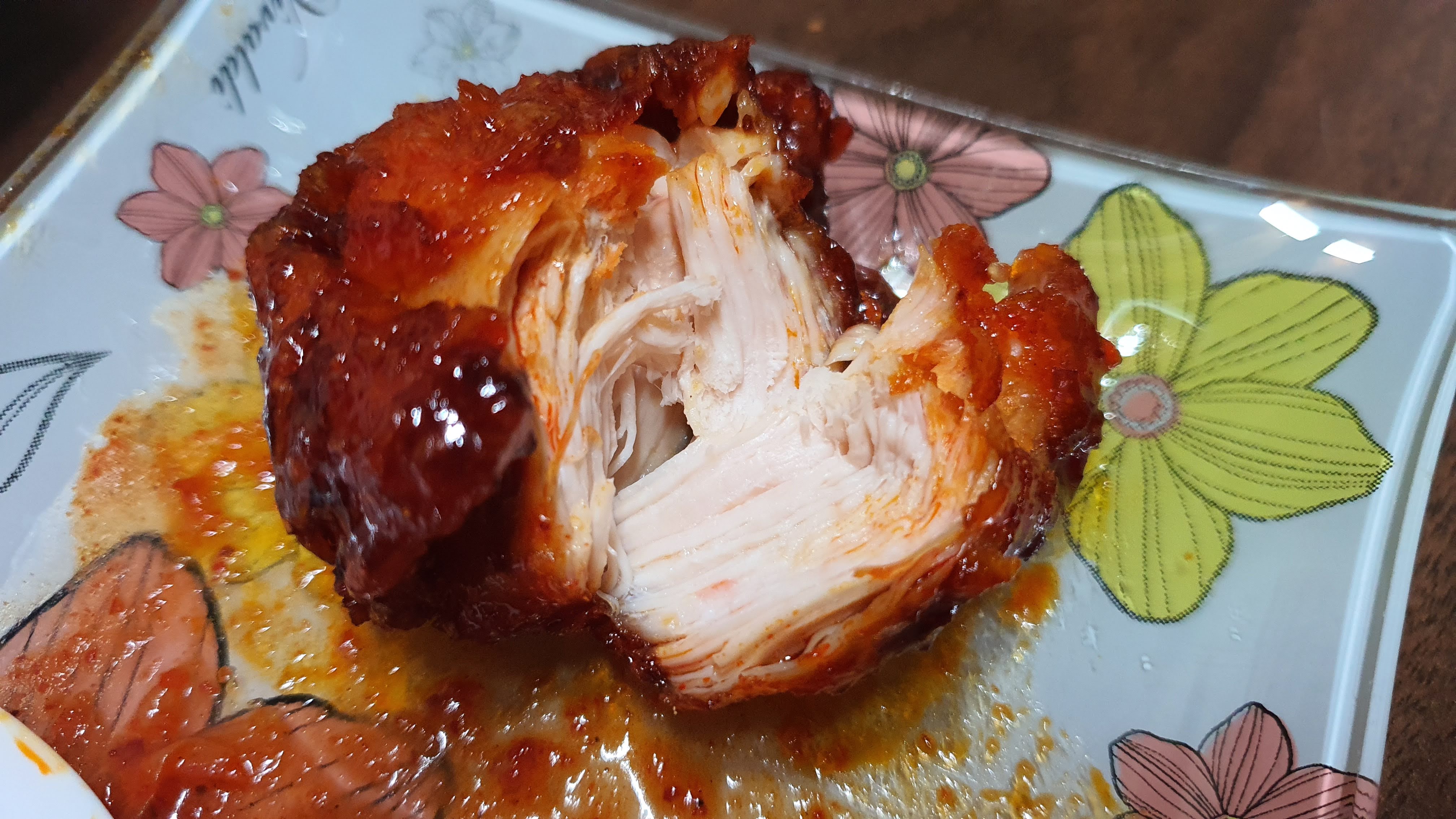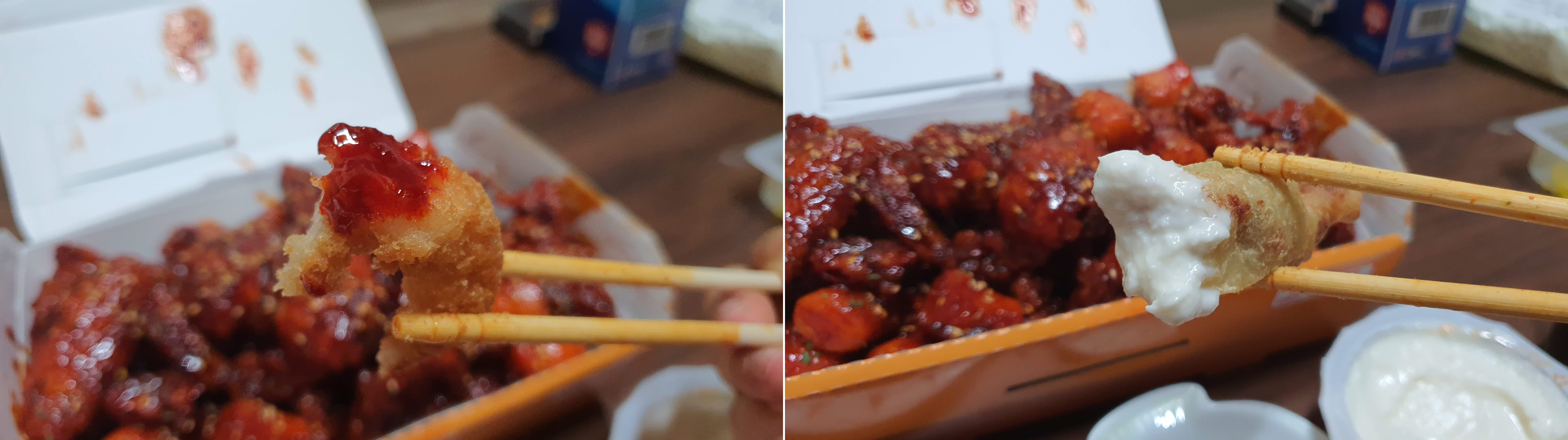 치킨의 살은 매운맛을 감쇠 시키기에는 충분한 거 같아요.