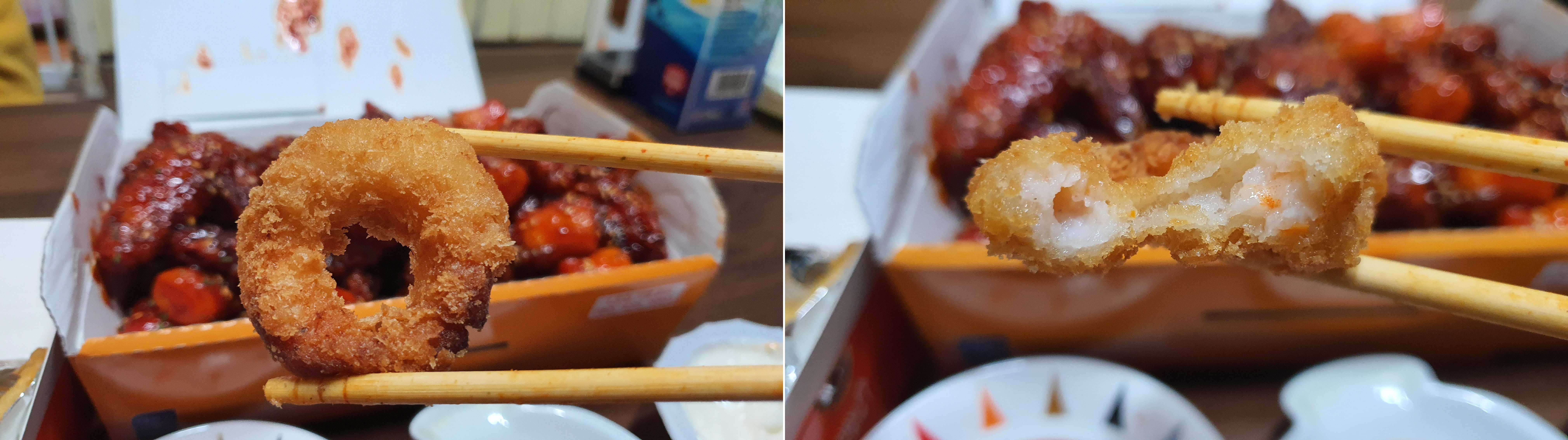새우링 튀김에 불닭 소스와 엔젤 코코 마요 소스를 묻혀서 먹기도 했어요^^