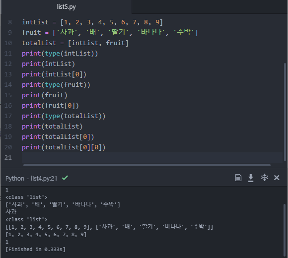 첫 번째 요소를 꺼내기 위해서는 'list [0]'을 사용하면 된다.