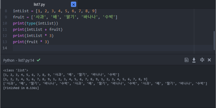 더하기(+)는 서로 다른 리스트를 합해서 하나의 리스트 자료형으로 만들어 준다.