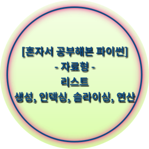 리스트의 생성, 인덱싱, 슬라이싱, 연산에 대해서 알아보았다.