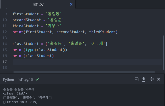 집합의 요소가 될 수 있는 문자열을 변수에 하나씩 저장 하는 것보다 하나의 리스트에 저장을 해서 데이터를 처리하는 것이 효율적인 방안이 될 수 있다.
