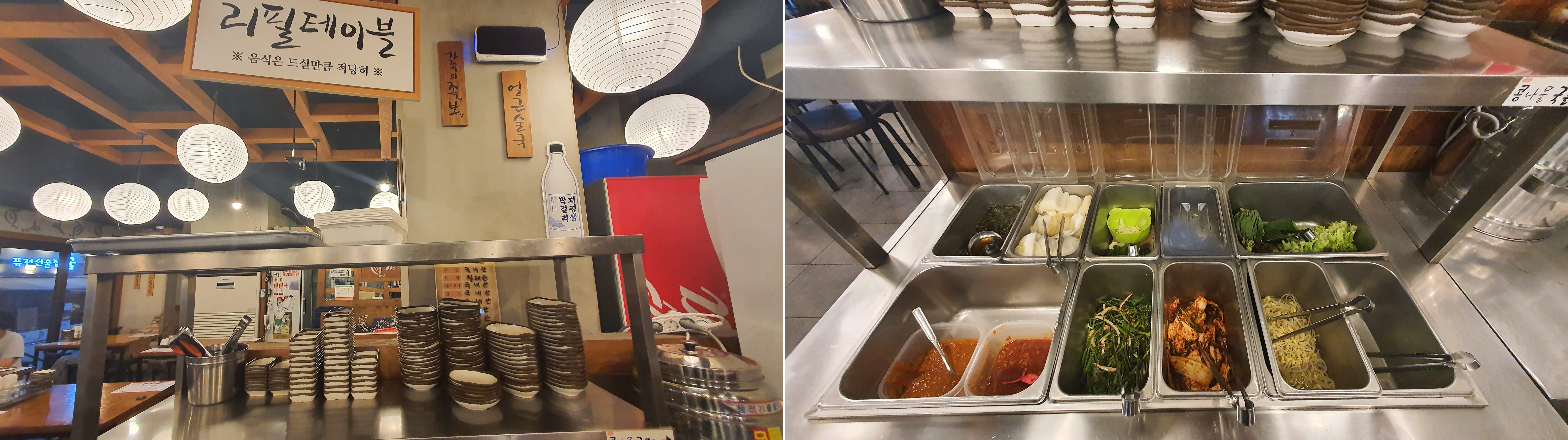 이렇게 나온 밑반찬들은 리필 테이블에서 부족한 분을 가져다 먹을 수 있어요^^
