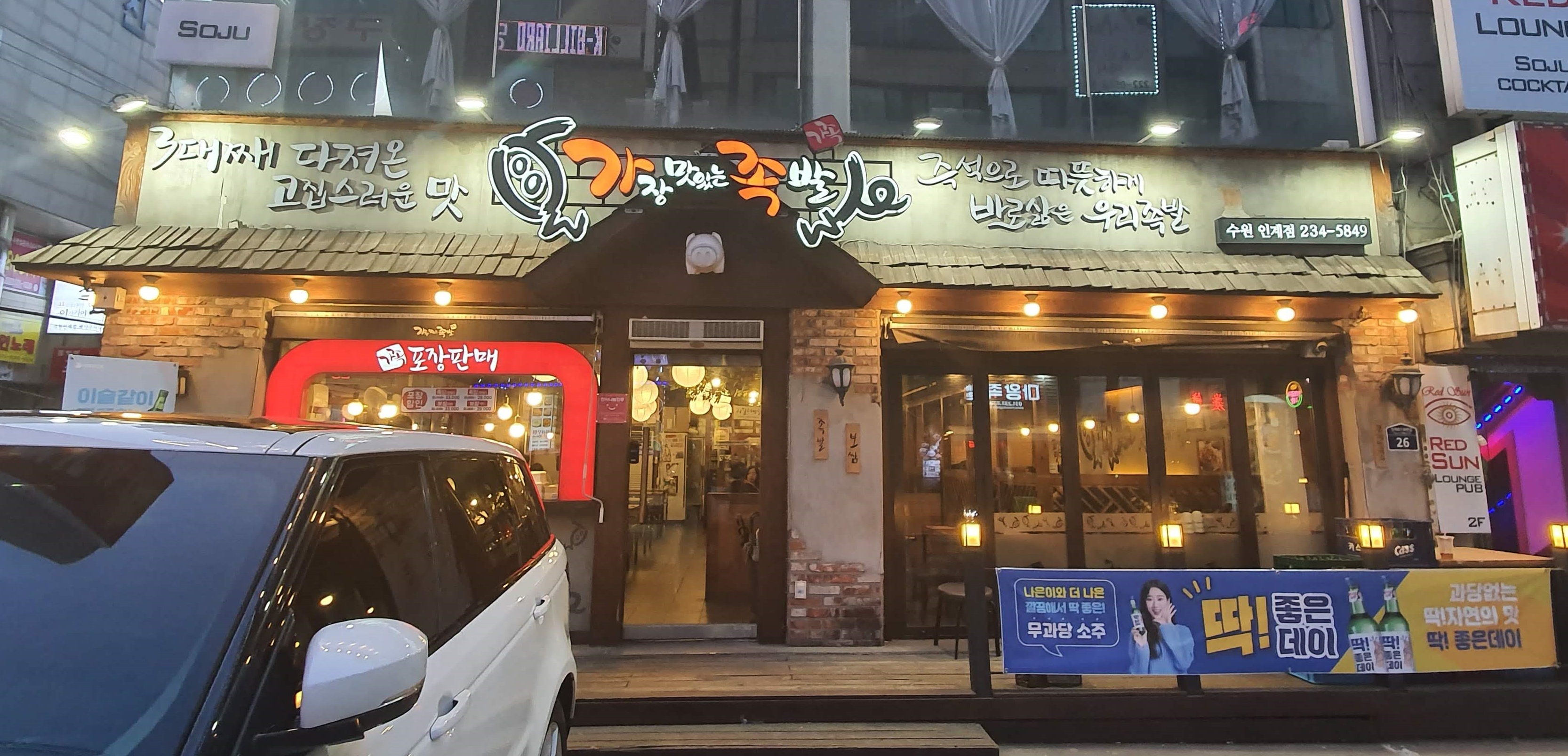 여러 군데가 나왔는데요. 저희는 그중에서 체인점인 '가장 맛있는 족발'집을 가기로 했어요.