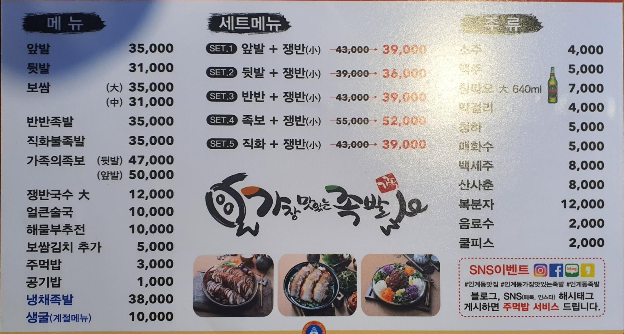 '가장 맛있는 족발'에는 다양한 메뉴가 준비되어 있었어요.