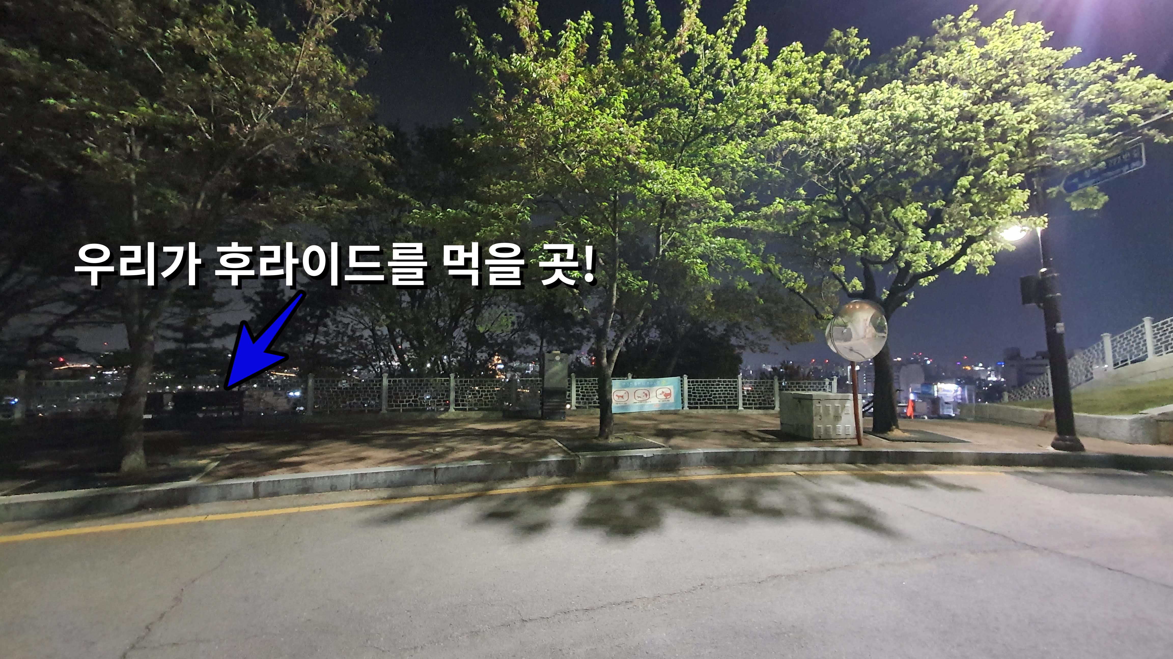 저기 끝에 보이는 벤치가 저희가 후라이드를 먹으려고 하는 곳이에요^^