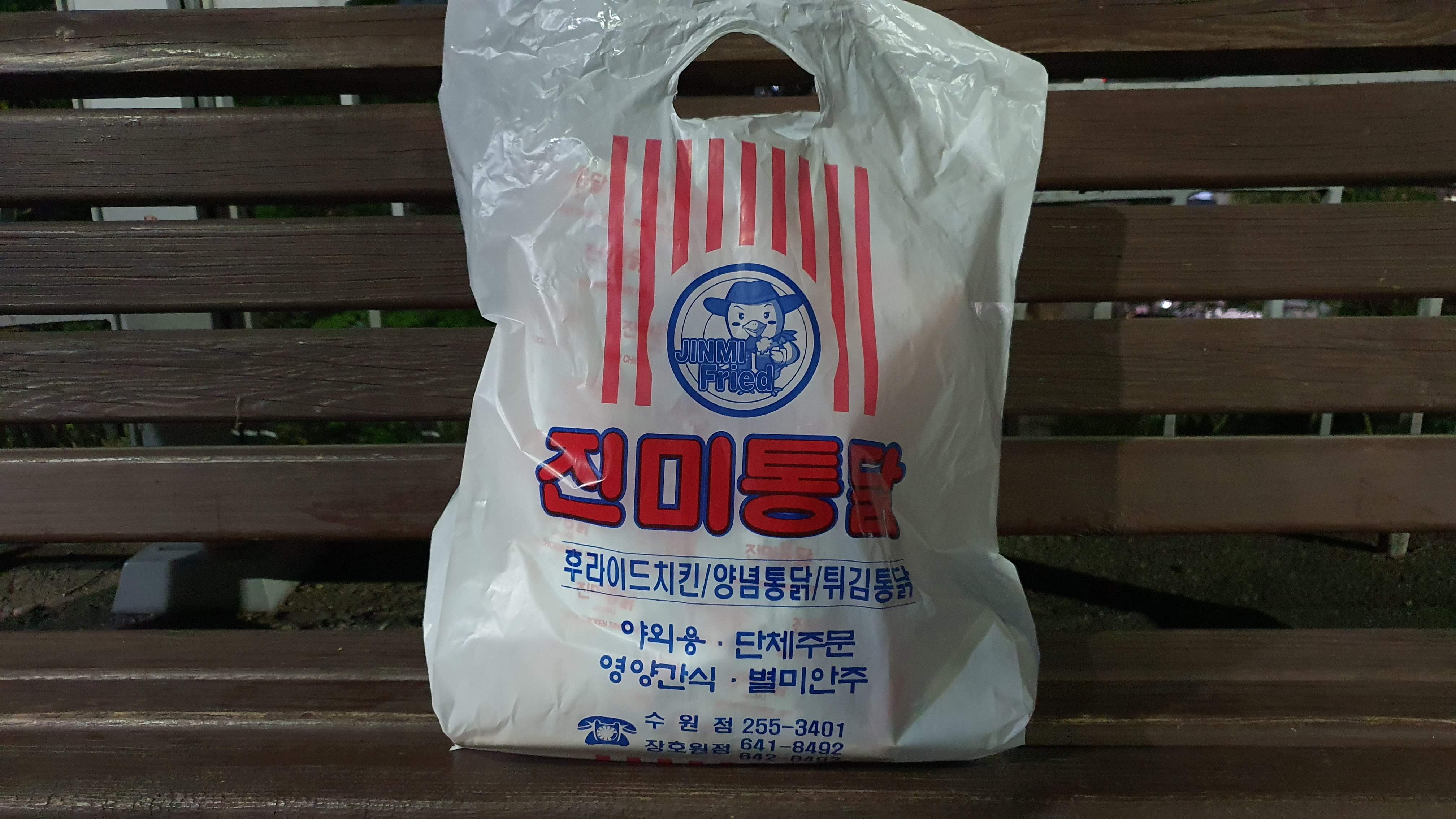 '진미통닭'은 박스 포장이 아닌 종이봉투 포장을 해줘요.
