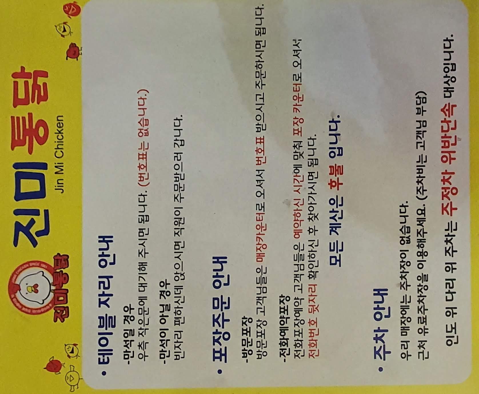 '진미통닭' 영업시간은 매일 12:00 ~ 24:00시까지고요. 월요일은 휴무예요.