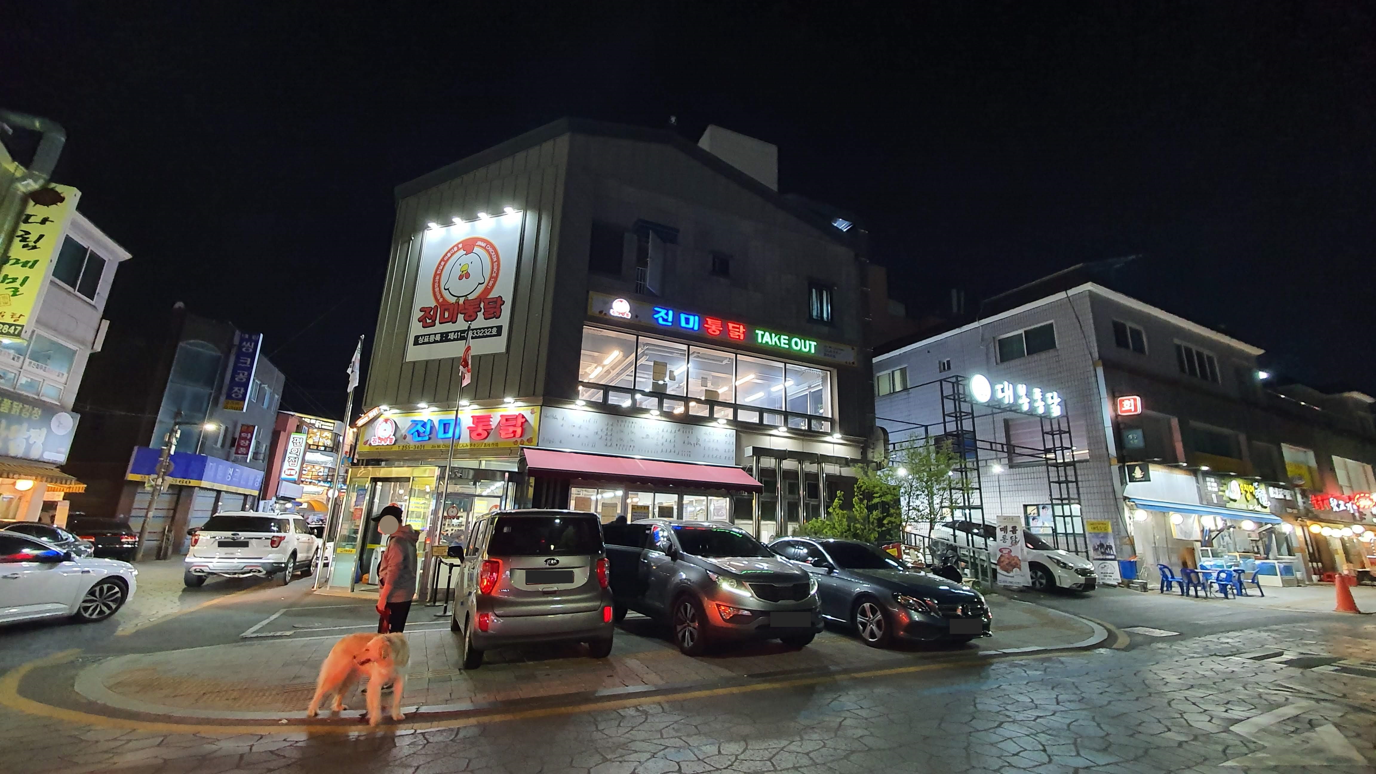 그런데 통닭거리를 지나면서 솔솔 뿜어져 나오는 통닭 냄새에 도저히 참을 수가 없어서 콩냥이를 꼬셨어요. ㅎㅎㅎ