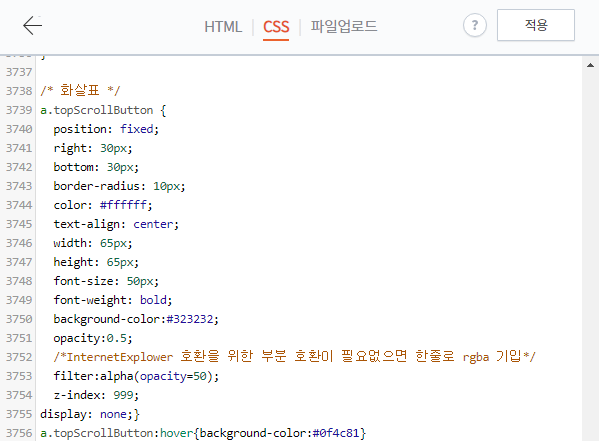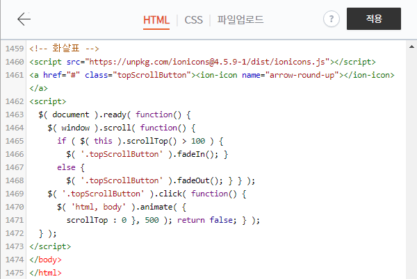 본문 위로 올리는 스크롤 html 코드 및 적용 위치