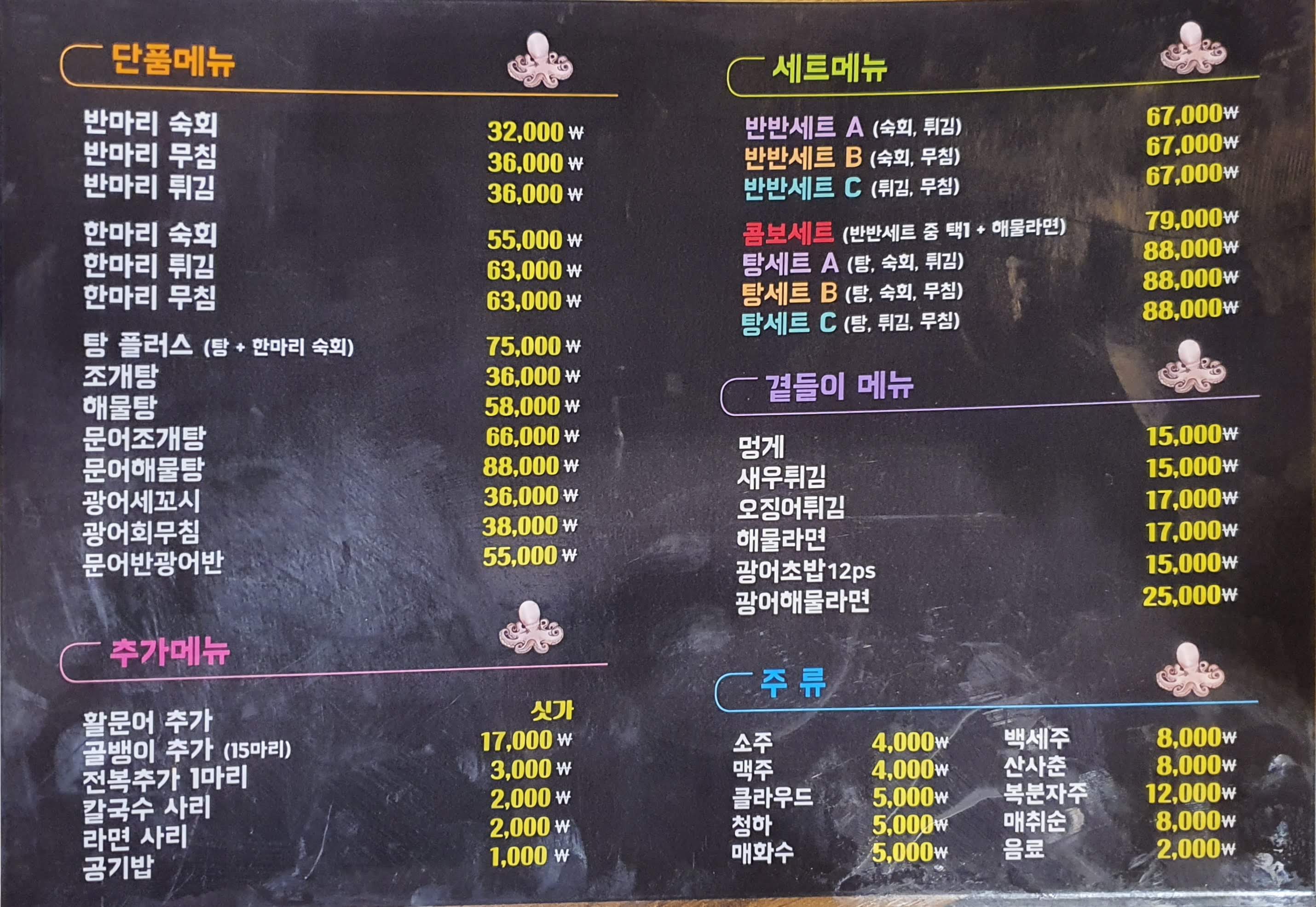 '0919 여수 돌문어' 메뉴와 가격을 볼게요~