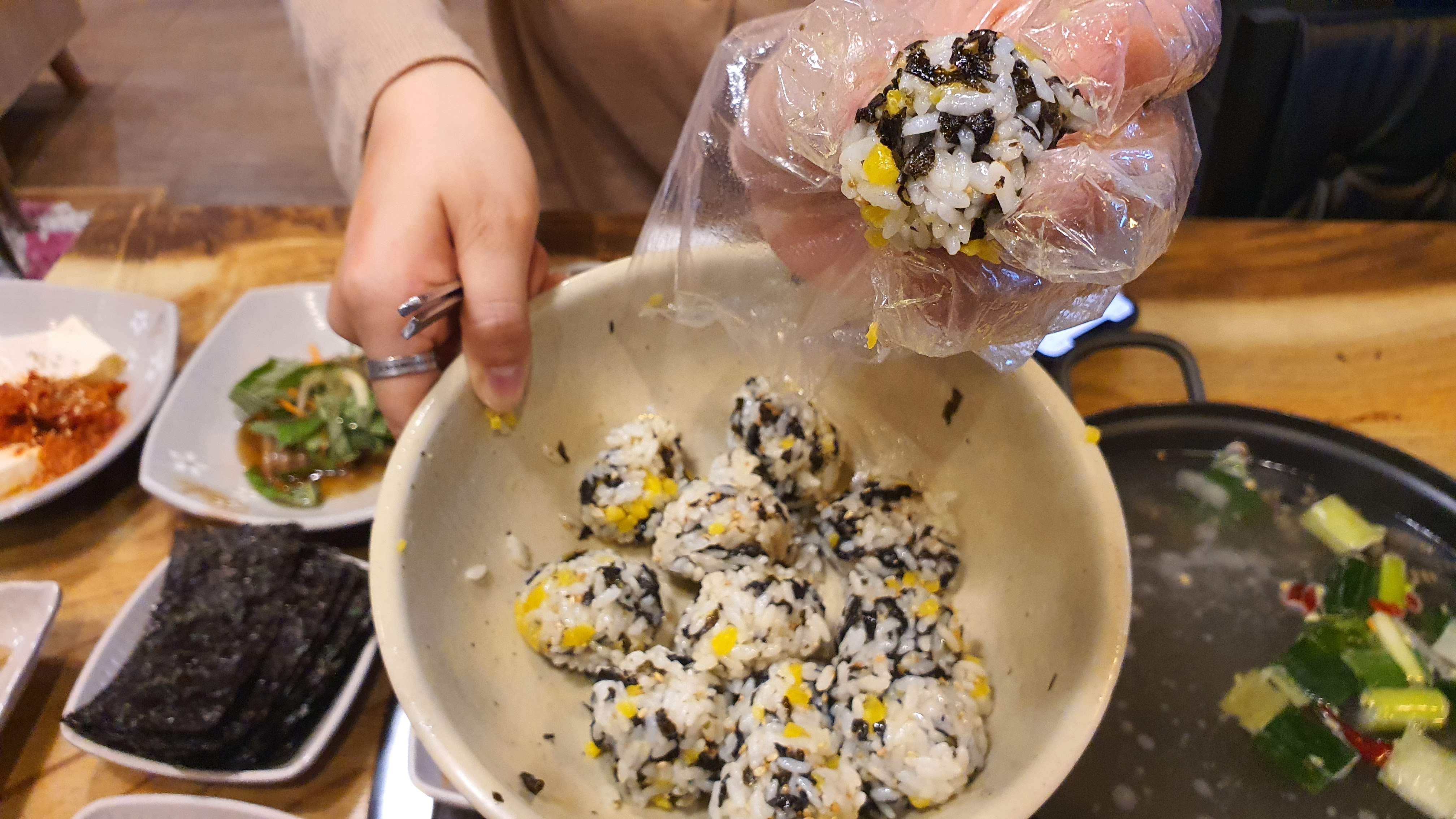 콩냥이가 이쁘게(?) 주먹밥을 만들어 주었어요. ㅎㅎㅎ