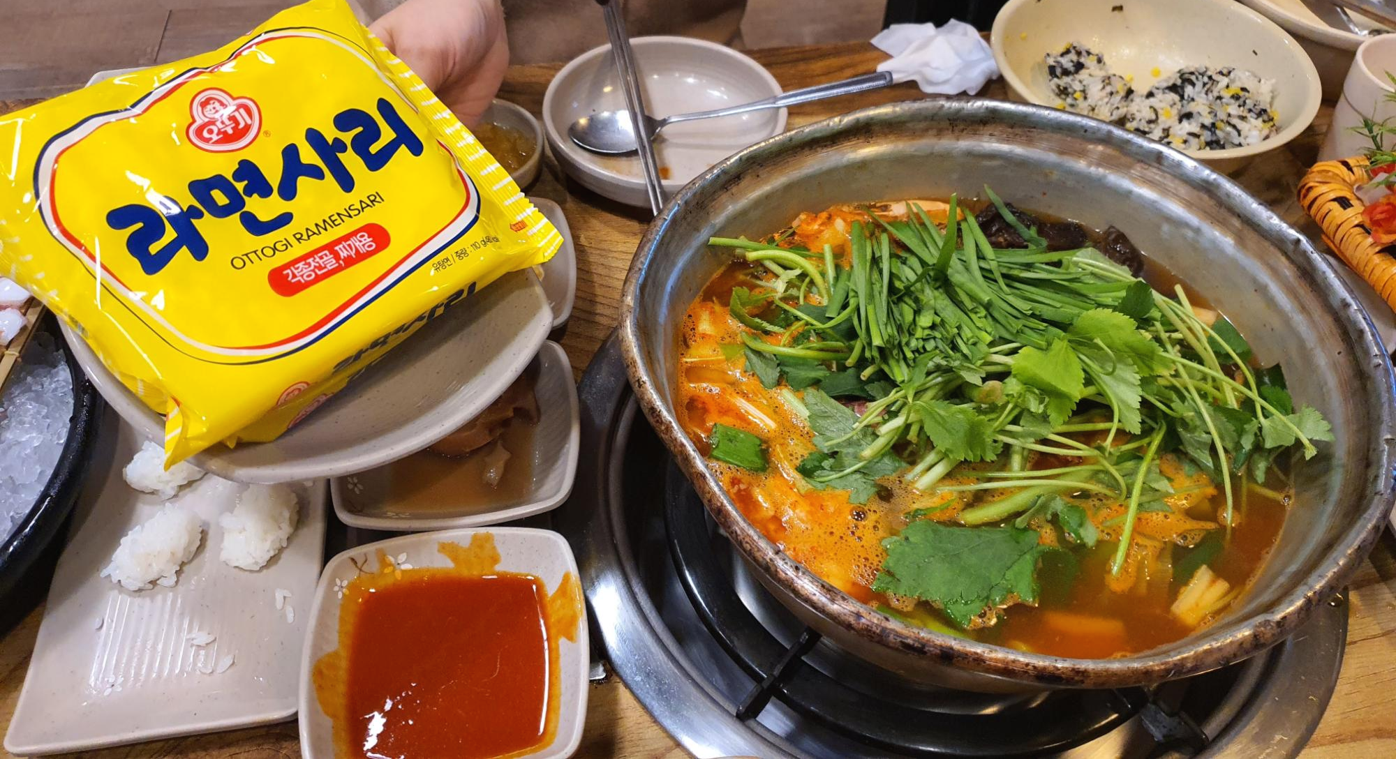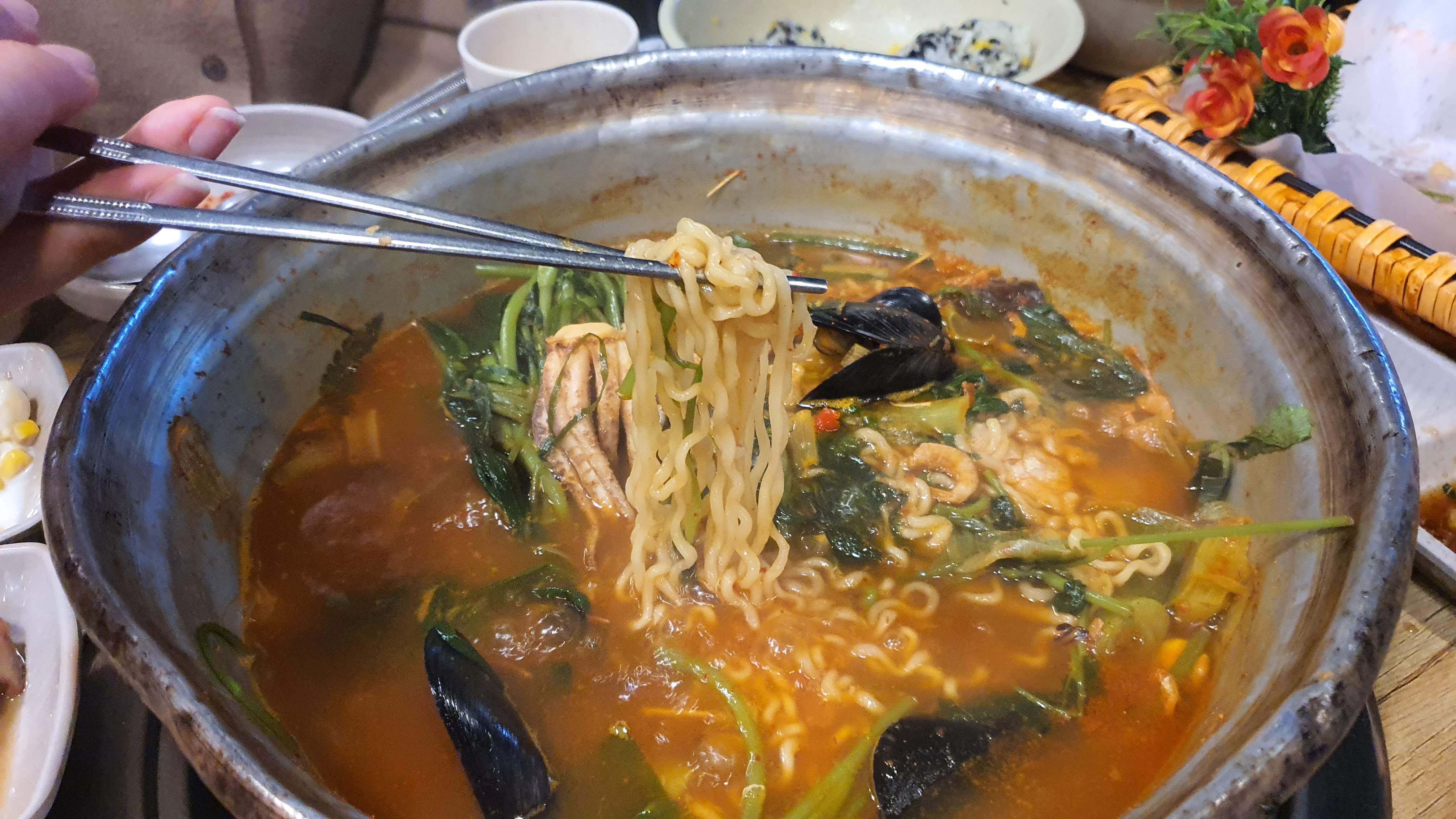 저희는 너무 음식이 많아서 라면사리는 하나만 넣어 먹었어요. ㅎㅎ