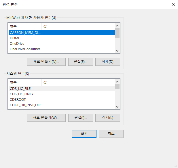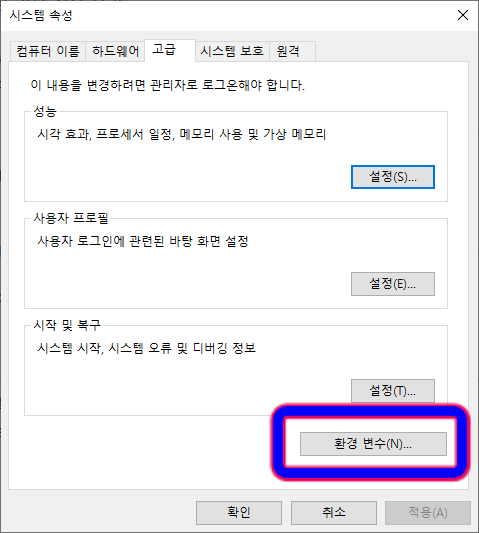 위 세가지 방법을 통하여 시스템 속성에 접근을 하여 고급 > 환경 변수를 이용하면 된다.