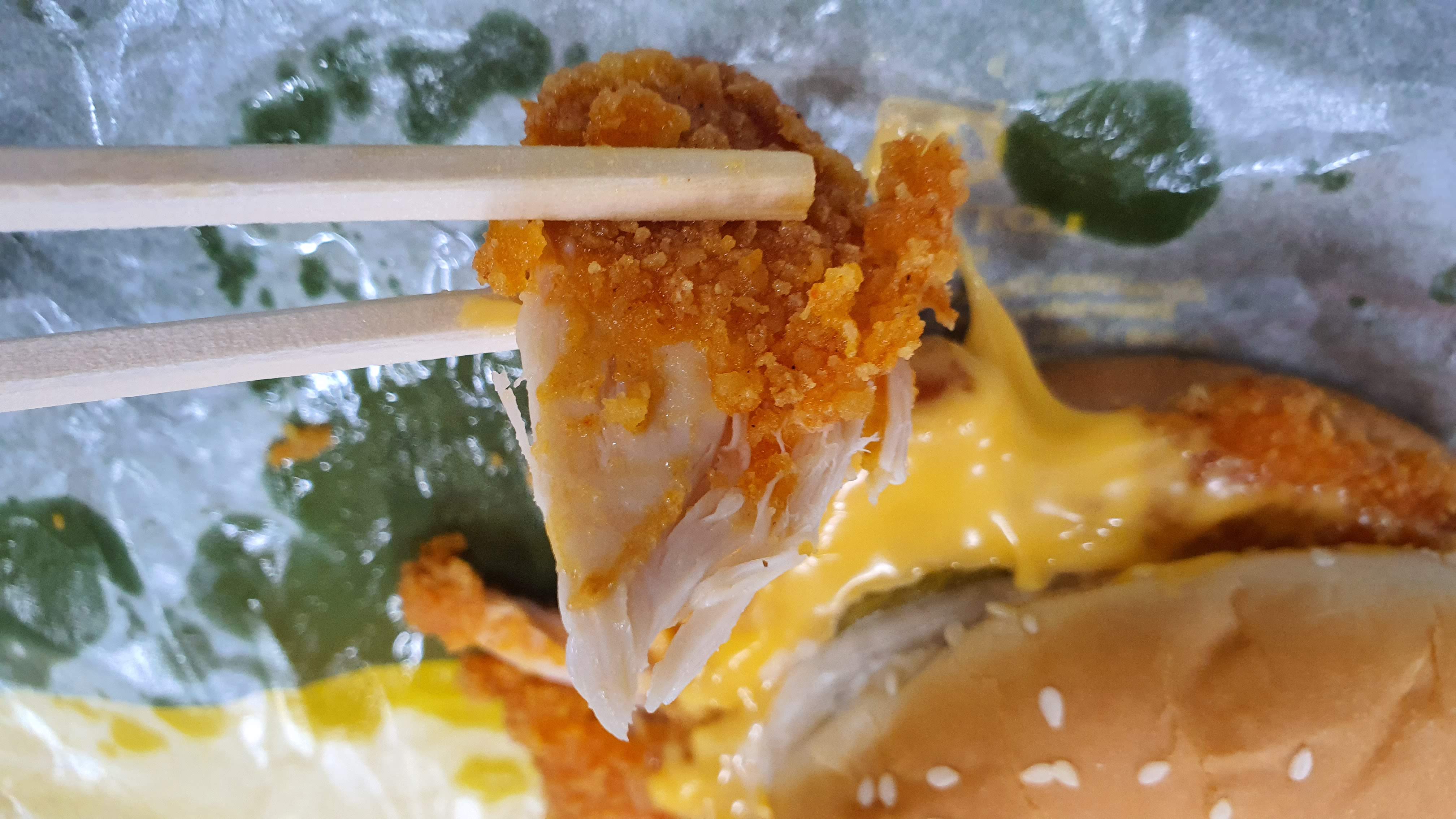 처음에 지파이를 먼저 야금야금 먹고 햄버거 빵과 속 내용물과 같이 먹었어요.