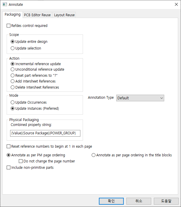 프로젝트의 부품 번호, 각 회로도 별 배선 연결 등을 합니다.