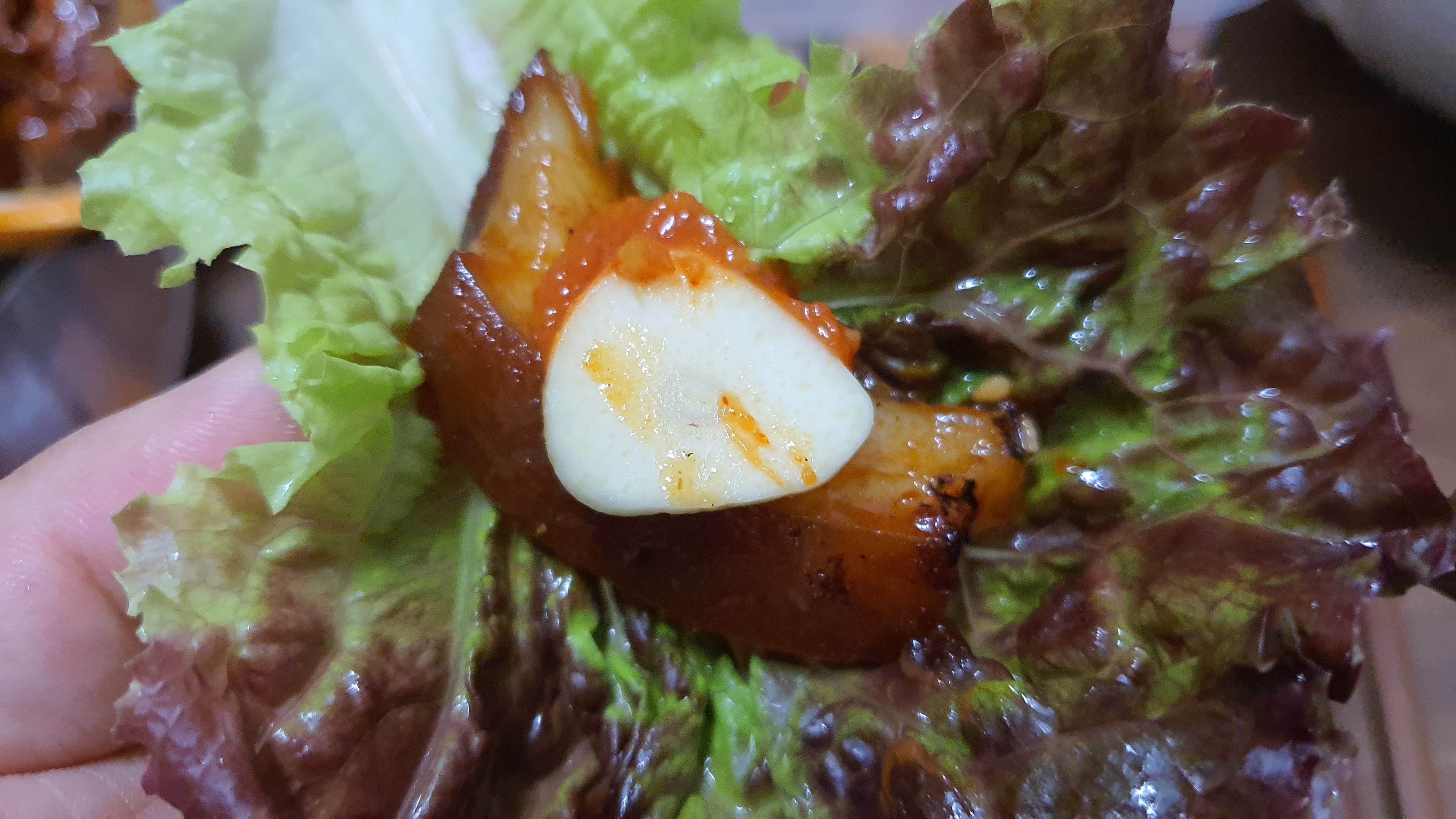 처음에 젓가락에 살짝 묻은 매운 양념 족발의 소스를 먹었을 때 엄청 맵다고 느꼈는데요. 생각보다는 맵지는 않았어요. ㅎㅎ