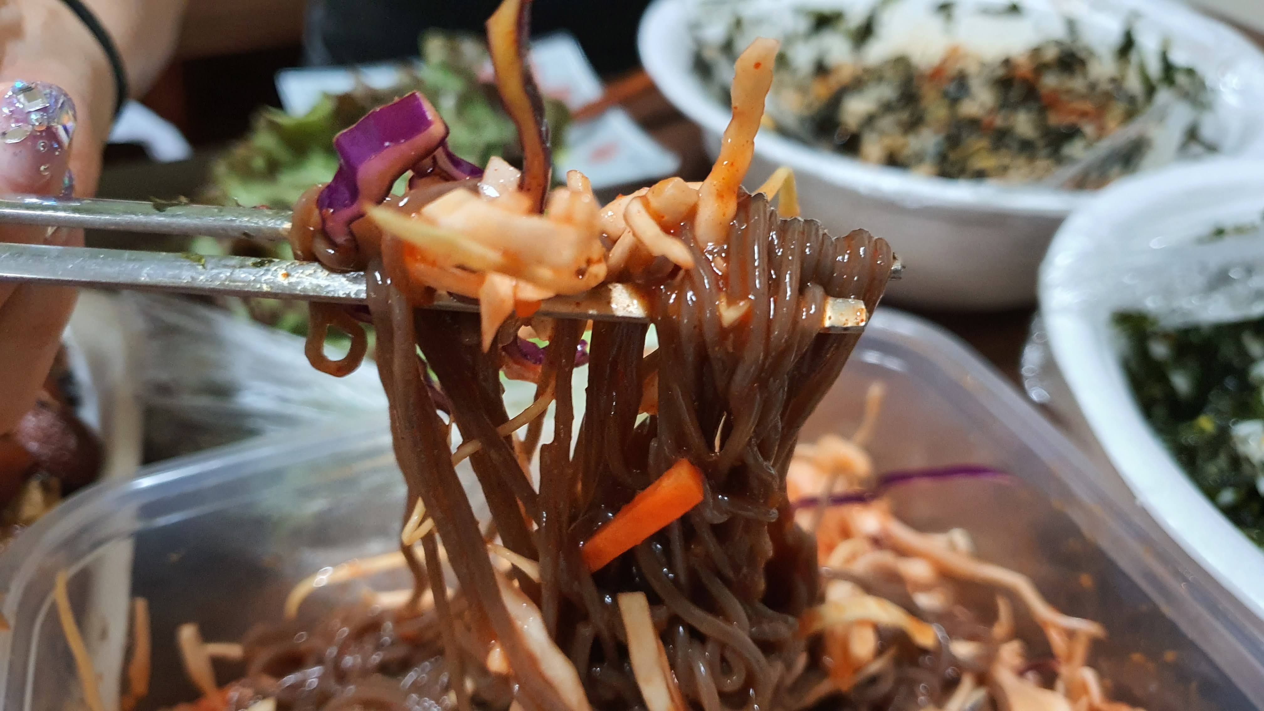 쟁반국수를 시키고 오돌뼈 주먹밥이 보여서 추가를 했어요^^