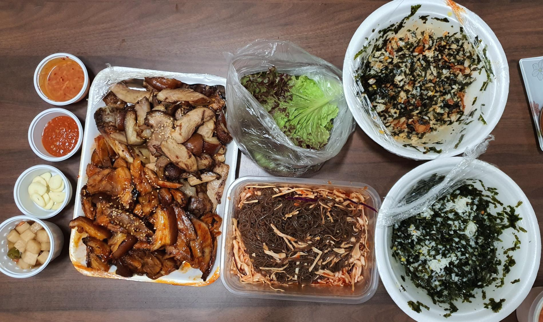 직화구이의 불맛이 너무 좋았어요. 소금 족발로 조금 느끼하다 싶음 매운 양념으로 입가심도 되고 반반이 이래서 좋은 가 보다 싶었어요. 저는 쌈을 자주 싸 먹는 편인데 양에 비해서 상추가 적어서 조금 아쉬웠어요. 쟁반국수는 아까 말했듯이 양념이 싱거워서 조금 아쉬웠어요. 그래도 메인 메뉴인 족발과 오돌뼈 주먹밥은 성공했어요. ㅎㅎ 평소 먹던 곳이 아닌 불불이 족발에서 시켰는데 양도 푸짐하니 좋았어요^^ 다음에 또 시켜 먹을 거 같아요. 하하~