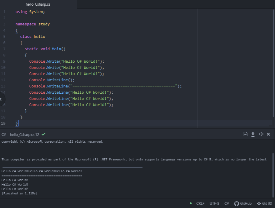 ATOM에서 C# 코드 파일 작성 방법 지난번에 ATOM에서 C# 컴파일을 하는 방법을 알아보았습니다. [ProgramStudy/Development tool] - ATOM 에디터에서 C# 컴파일 하는 법! ATOM 에디터에서 C# 컴파일 하는 법! ATO..