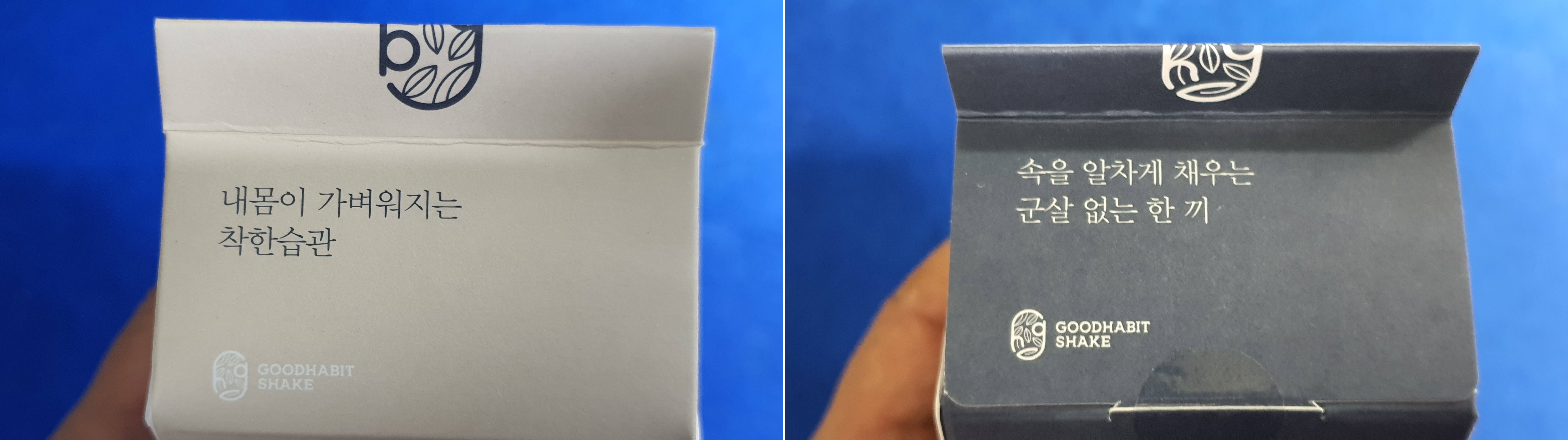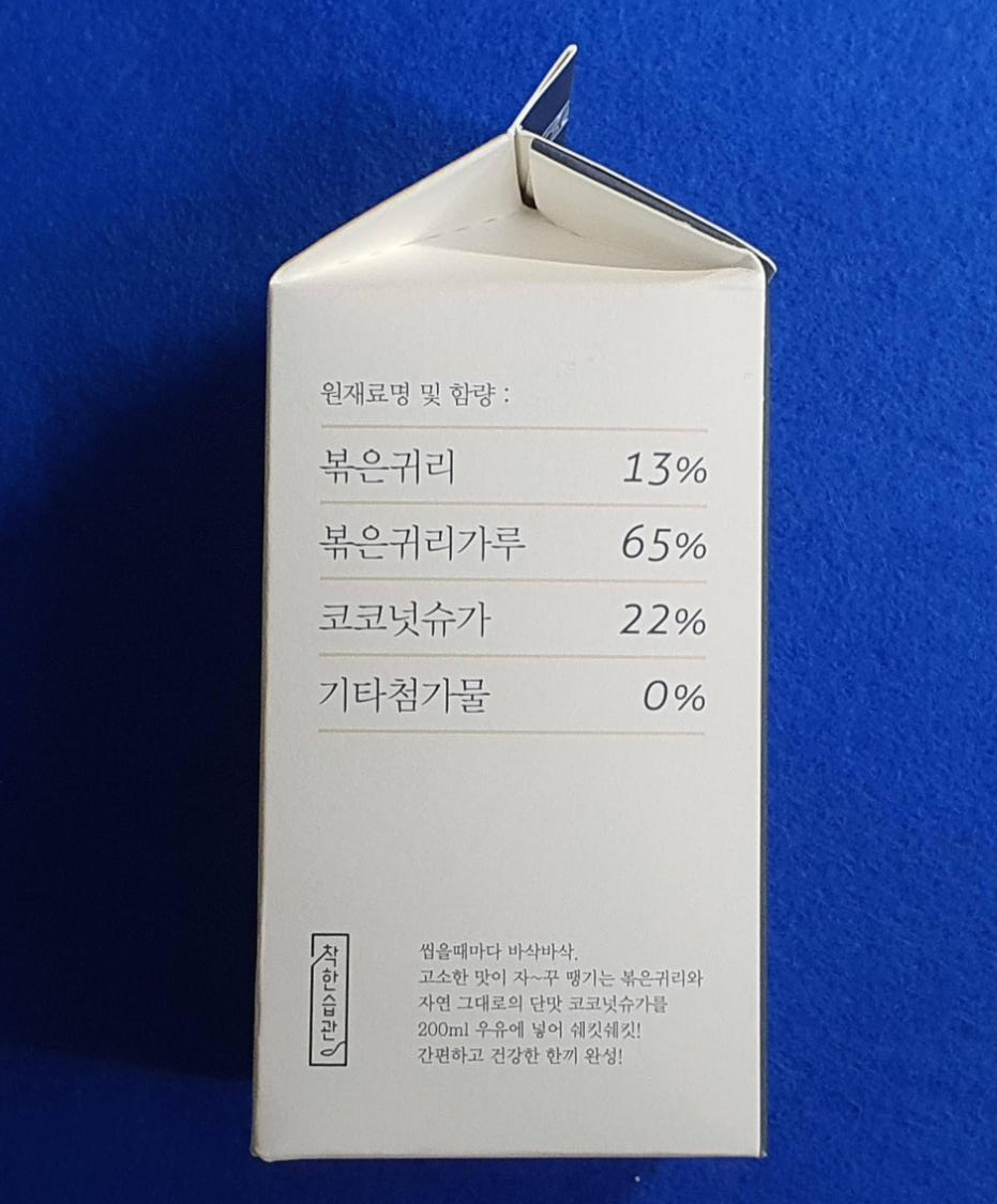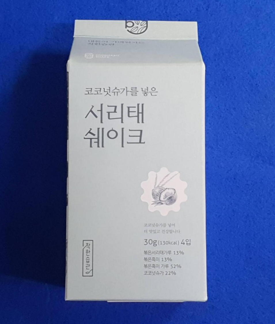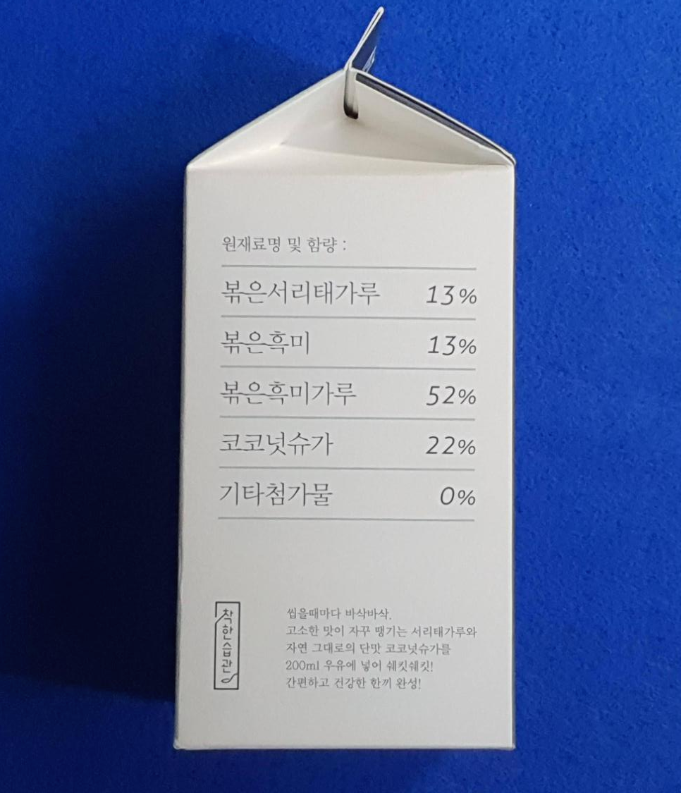 귀리 쉐이크와 서리태 쉐이크는 우유곽 처럼 생긴 박스로 되어 있습니다.